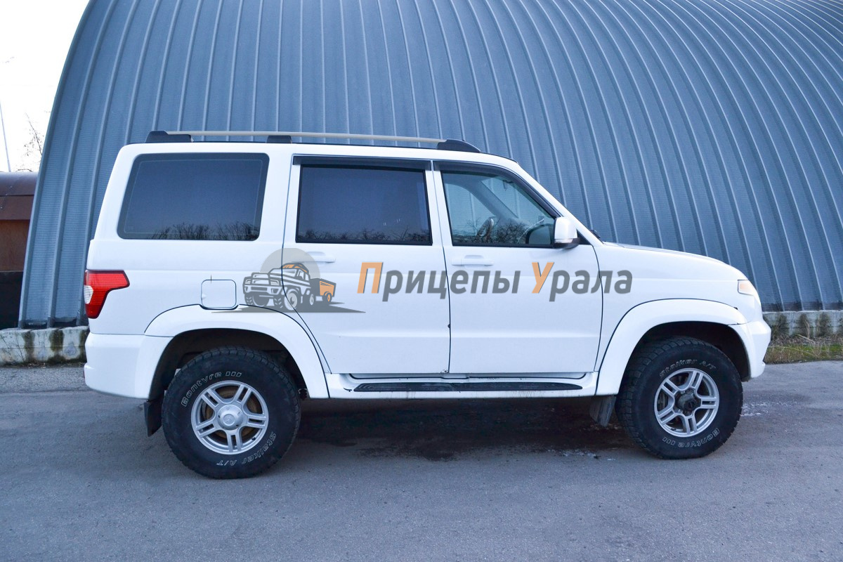 Рейлинги на UAZ Patriot изготавливаются из материалов, аналогичных заводским. После установки не выделяются из общей стилистики автомобиля. Модернизированная конструкция рейлингов в процессе установки не требует проклейки пластиковых деталей скотчем 3М. Важными факторами при ежедневной эксплуатации являются повышенная жёсткость конструкции и устойчивость поверхности к царапинам.