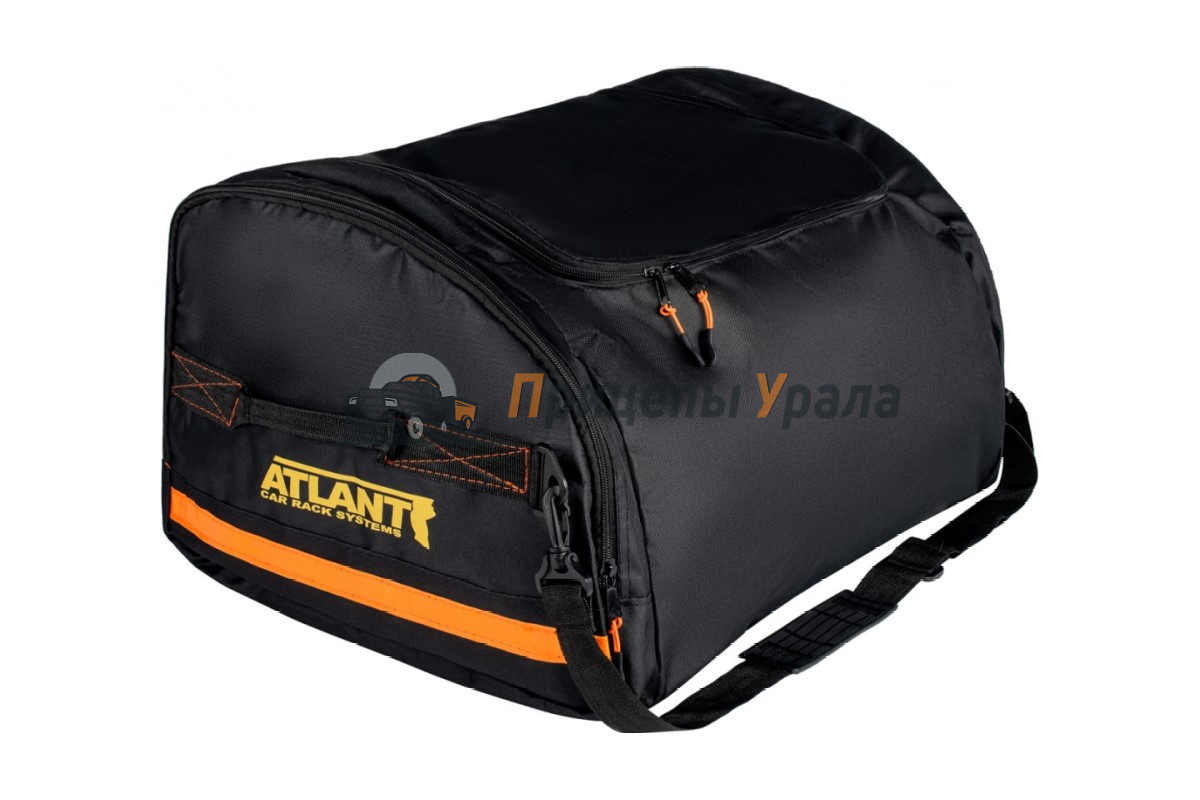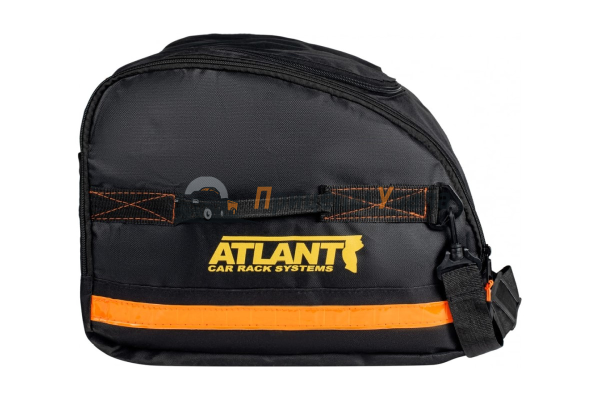 Сумка размещается в передней части бокса. Выполнена из водонепроницаемой ткани черного цвета. Сверху располагается клапан (крышка) на двух застежках-молниях. С обоих торцов сумки расположены вместительные карманы, также закрывающиеся на молнии. Переноска автомобильной сумки в багажник осуществляется с помощью регулируемого по длине ремня с резиновой накладкой и карабинами для крепления, либо с использованием двух крепких торцевые ручек. Светоотражательные полоски, а также логотип "Atlant" оранжевого, желтого или белого цвета на торцевых поверхностях, позволят обеспечить дополнительную безопасность при переносе сумок в темное время суток. Для наиболее эффективного использования внутреннего пространства бокса рекомендуется, кроме носовой сумки, размещать в боксе несколько основных сумок.