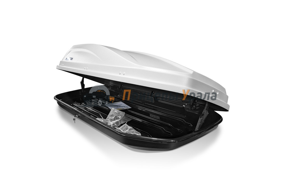 В комплекте с автобоксом поставляется набор ремней для стяжки груза. Бокс укомплектован замком с двумя ключами.