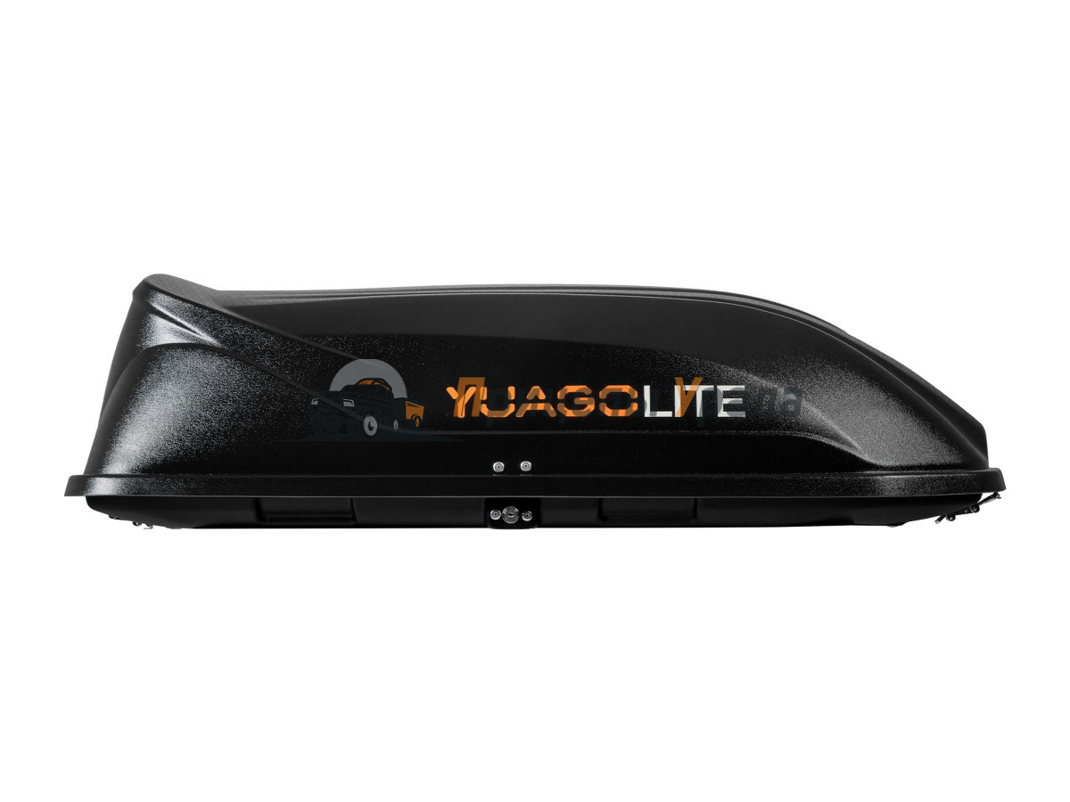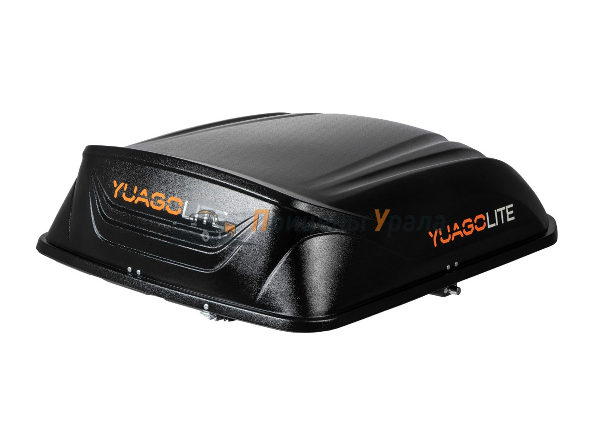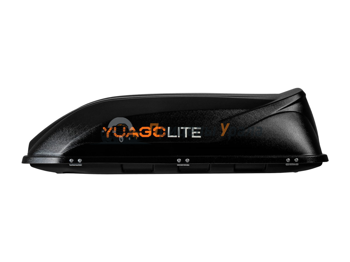YUAGO LITE сделан из качественного АБС-пластика. Автобокс имеет сертификат соответствия. Структура автобокса Яго в виде тиснения «песок» выделяет его среди других. Бокс на багажник довольно легкий (7,8 кг). Автобокс Яго Лайт за пару движений устанавливается на крышу автомобиля, открывается (с одной стороны) и надежно закрывается.