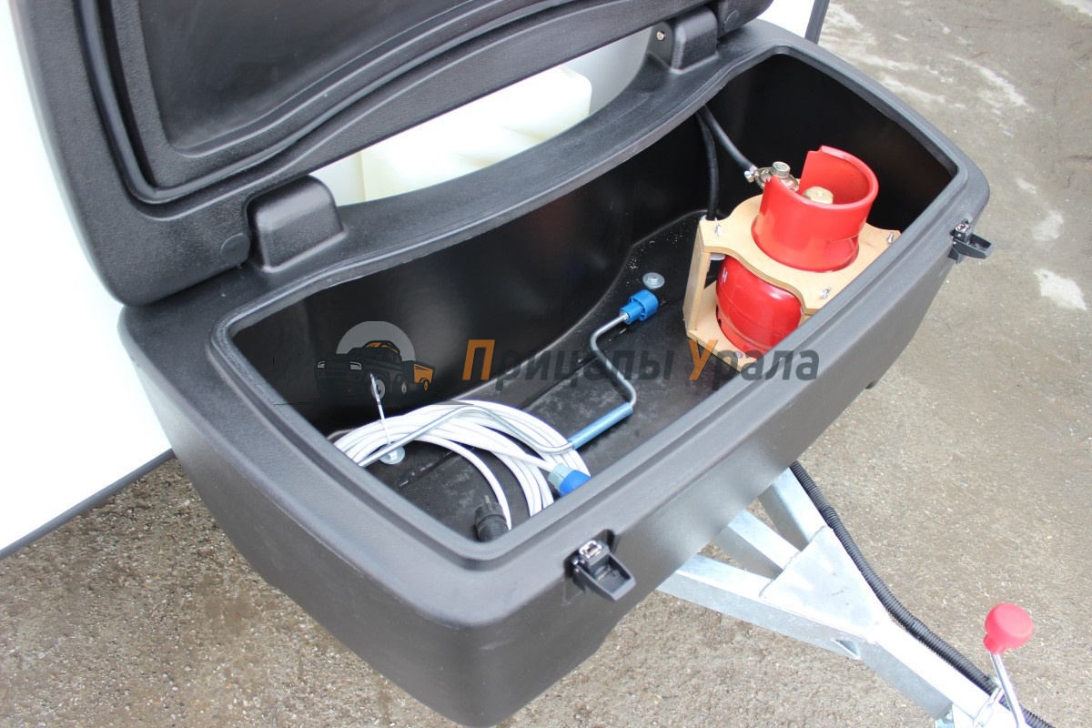 - Рундук на дышло из пластика. Газовый баллон объёмом 5 литров;
