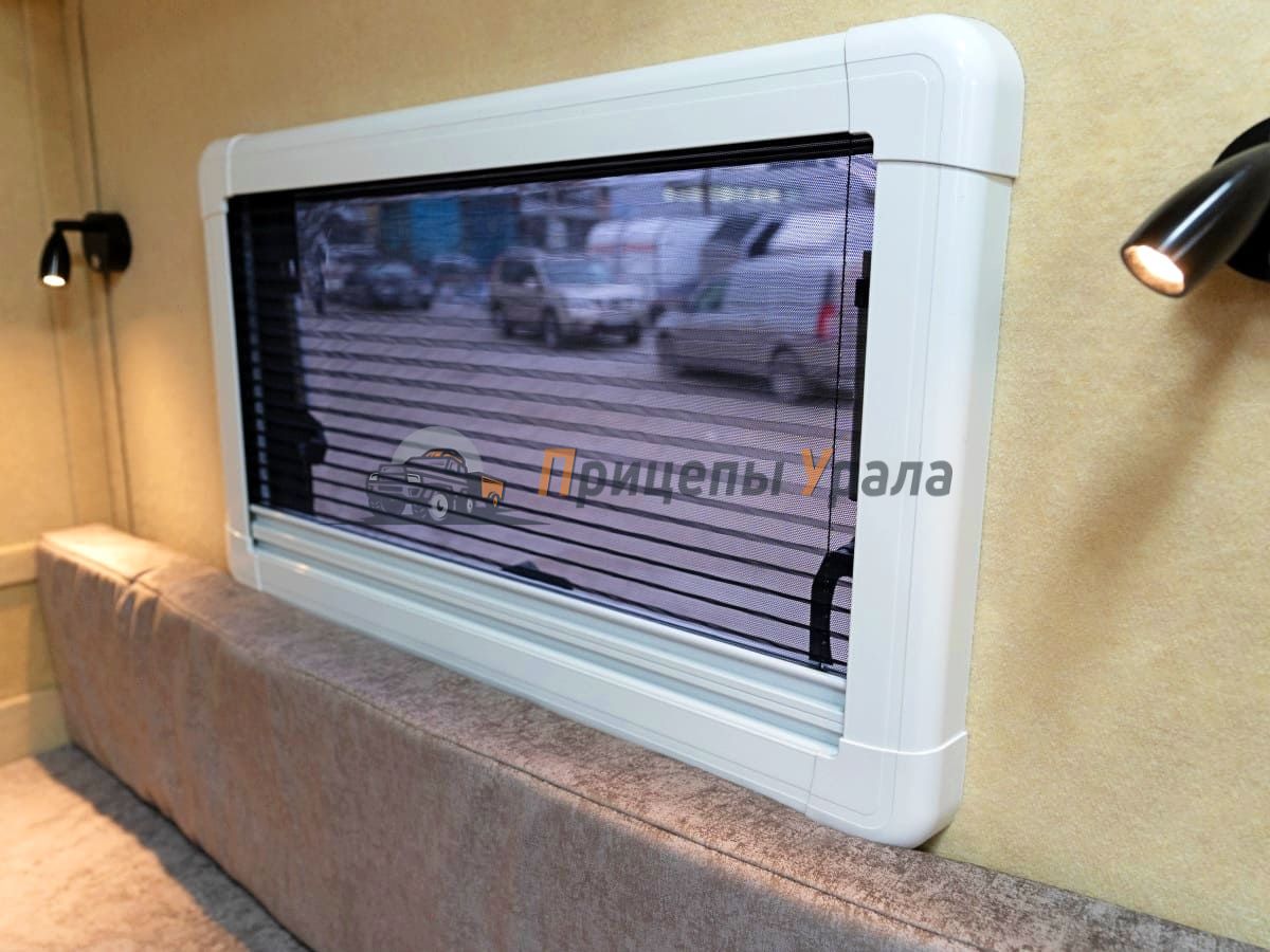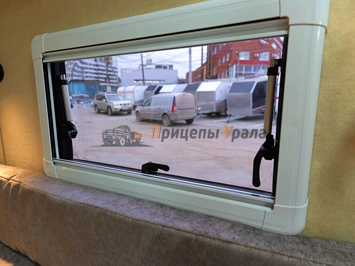 ● Окна: 3 окна размером 700x400 мм с откидным механизмом, двойным акриловым стеклом, москитной сеткой и шторкой.