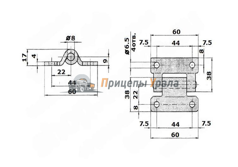 Бортовой шарнир 60х60 мм для дверей и створок. Выполнен из оцинкованной стали.