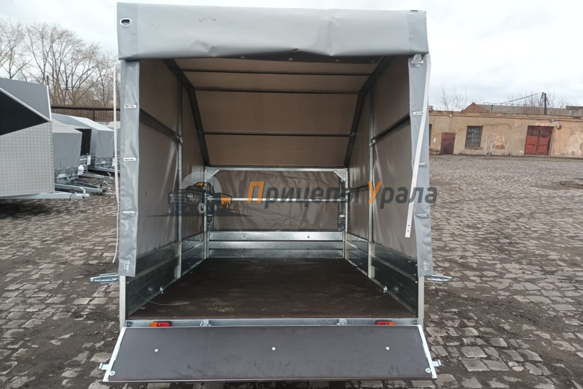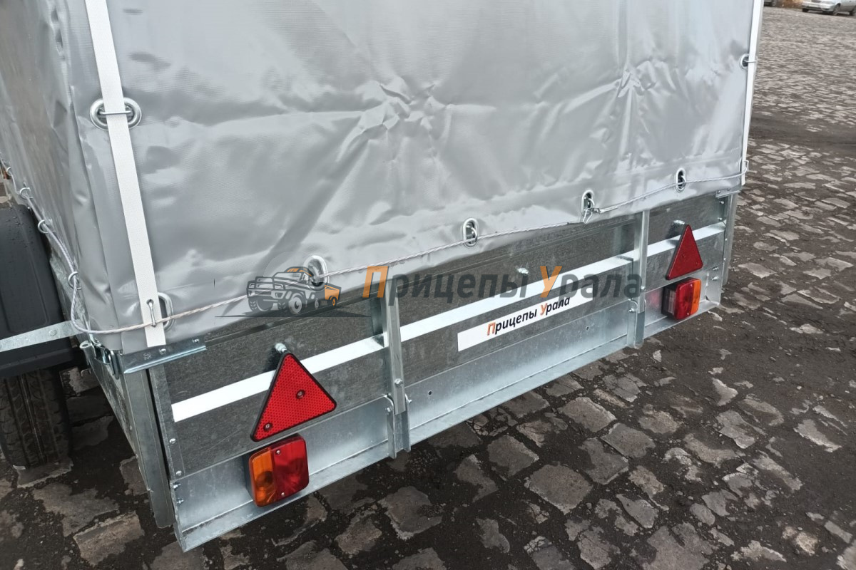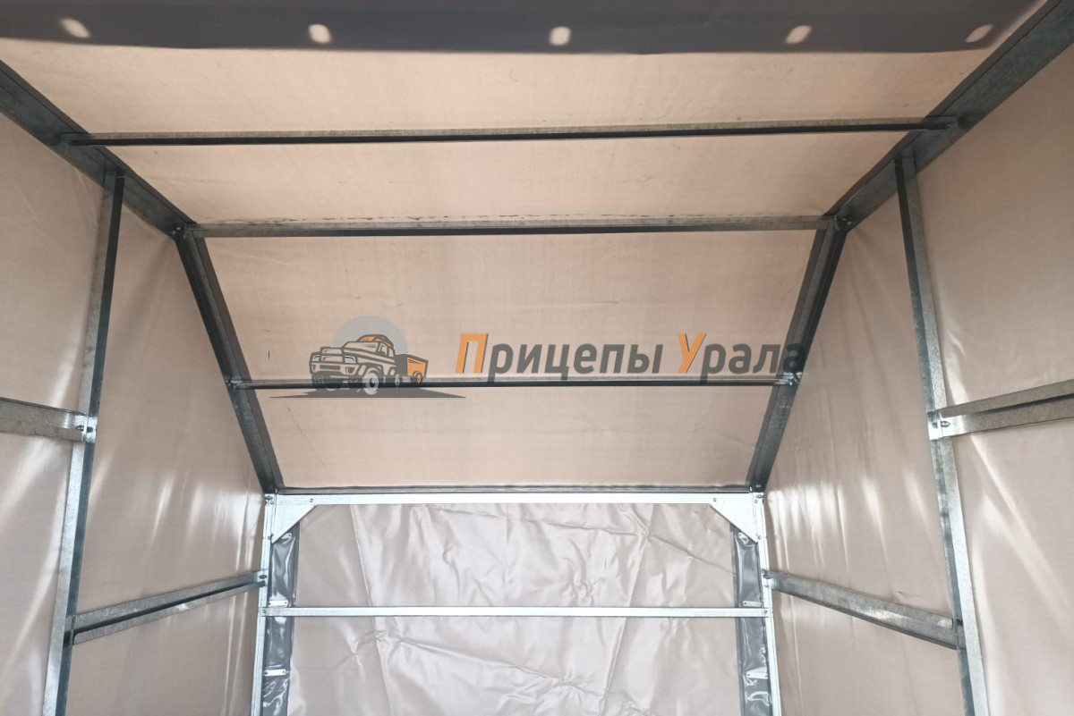 Пол платформы выполнен из фанеры толщиной 6 мм. Дополнительно можно установить тент с каркасом для защиты груза от атмосферных осадков и дорожной грязи. Тент выполнен из плотной тентовой ткани (600 г/м) с овальными люверсами и тросом с карабинами. Каркас оцинкованный, болтовой.