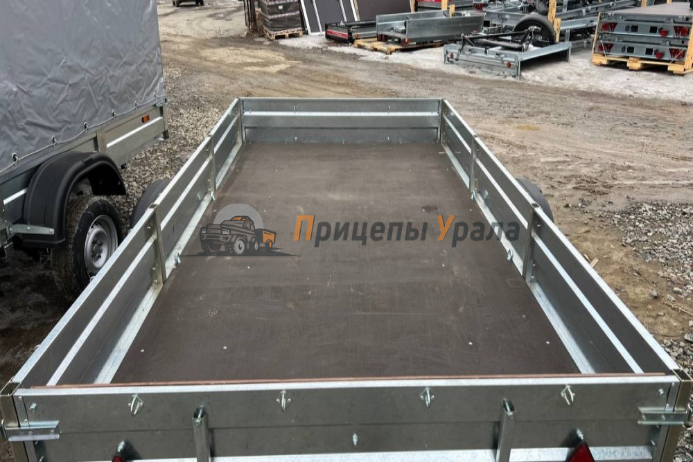 Передний и задний борта прицепа откидные. Задний борт оснащен фанерой. Толщина борта 1 мм. Стойка борта толщиной 2 мм.