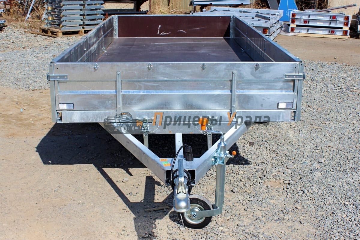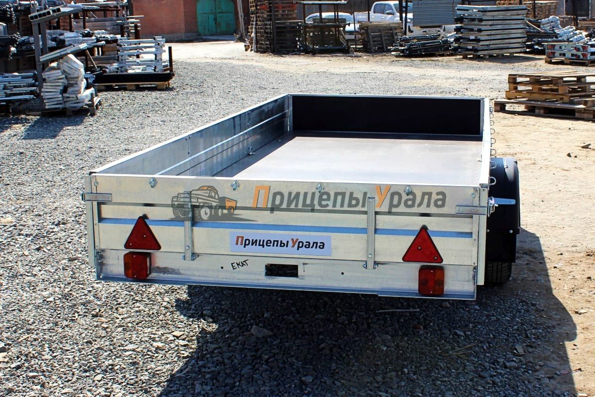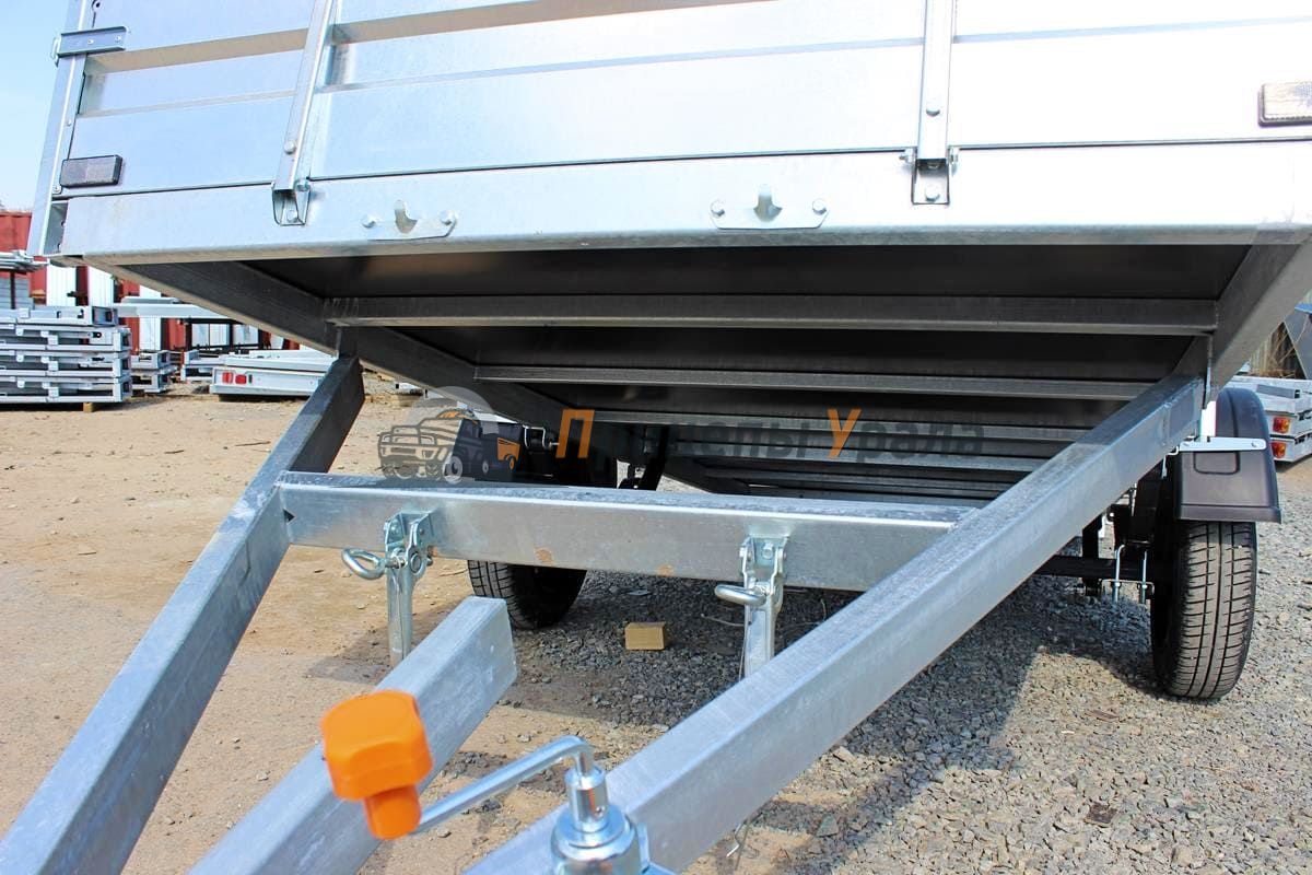 Передний и задний борта прицепа откидные. Задний и передний борта оснащены фанерой. Толщина борта 1 мм. Стойка борта толщиной 2 мм.