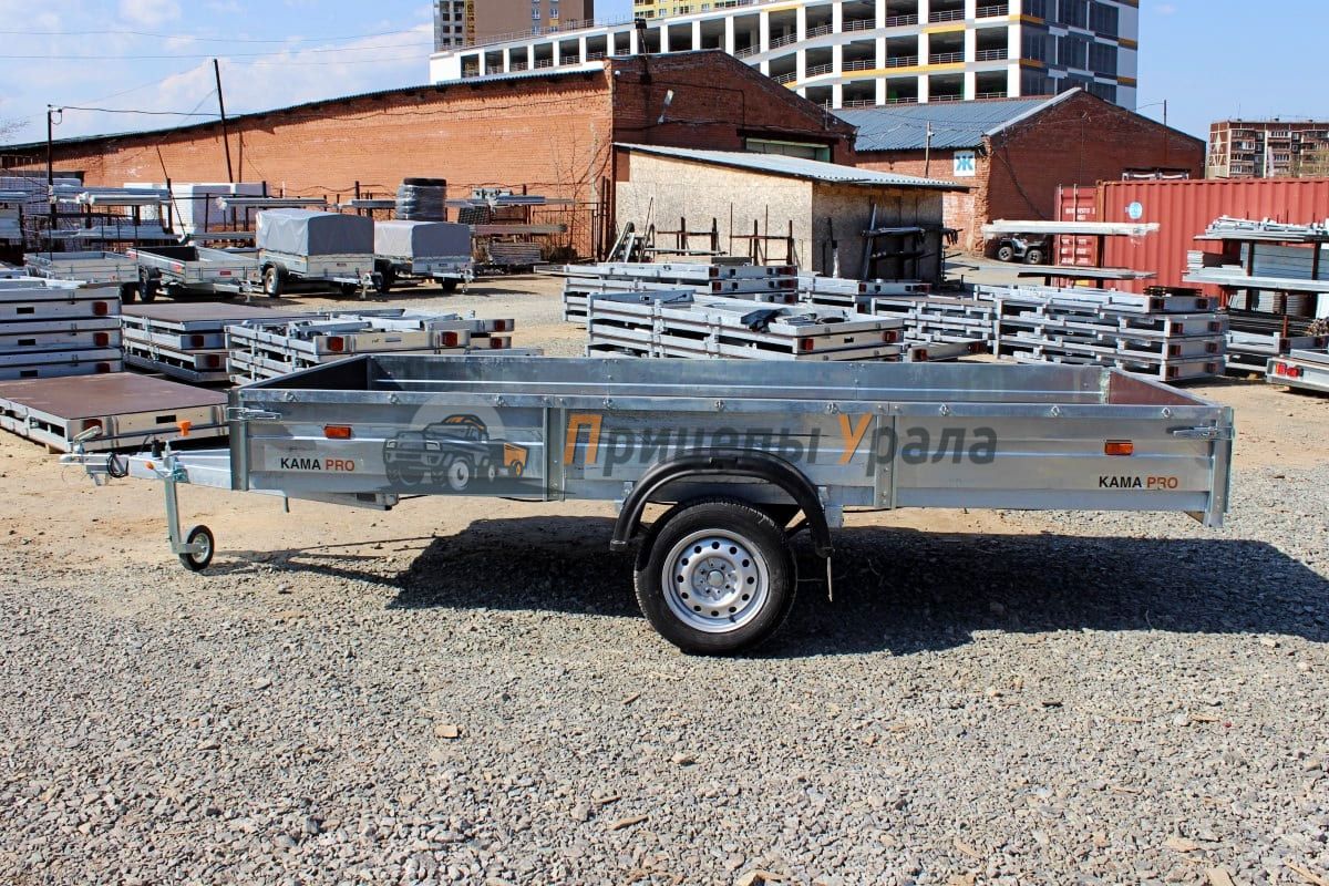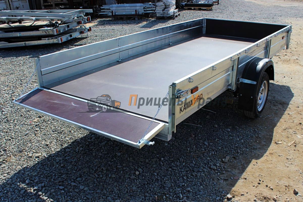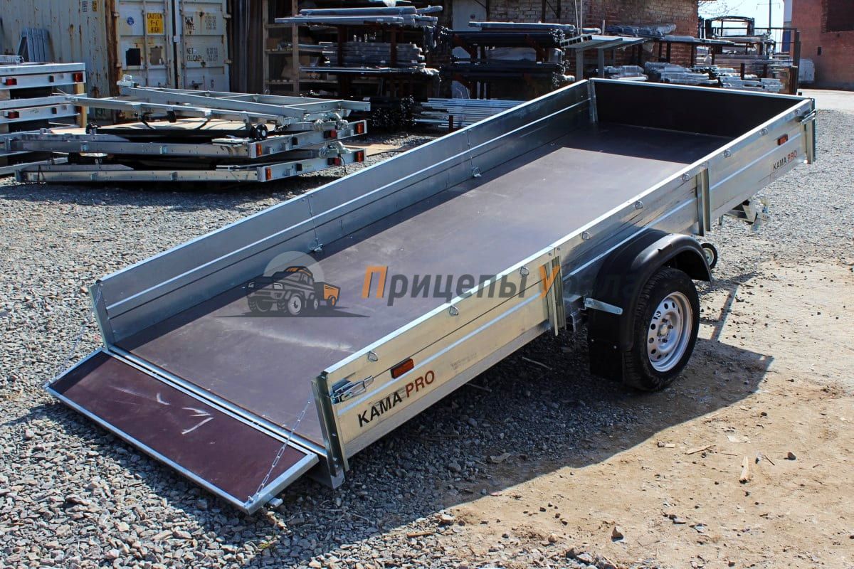 Автоприцеп "КАМА PRO" 3515 (R13) рестайлинг — полностью оцинкованный бортовой прицеп с самосвальной платформой, одноосный. Предназначен для перевозки грузов общего назначения, отлично подходит для перевозки квадроциклов и снегоходов.