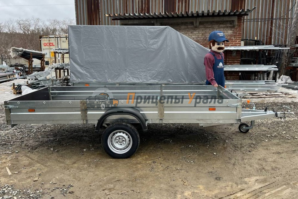 Передний и задний борта прицепа откидные. Задний борт оснащен фанерой. Толщина борта 1 мм. Стойка борта толщиной 2 мм.