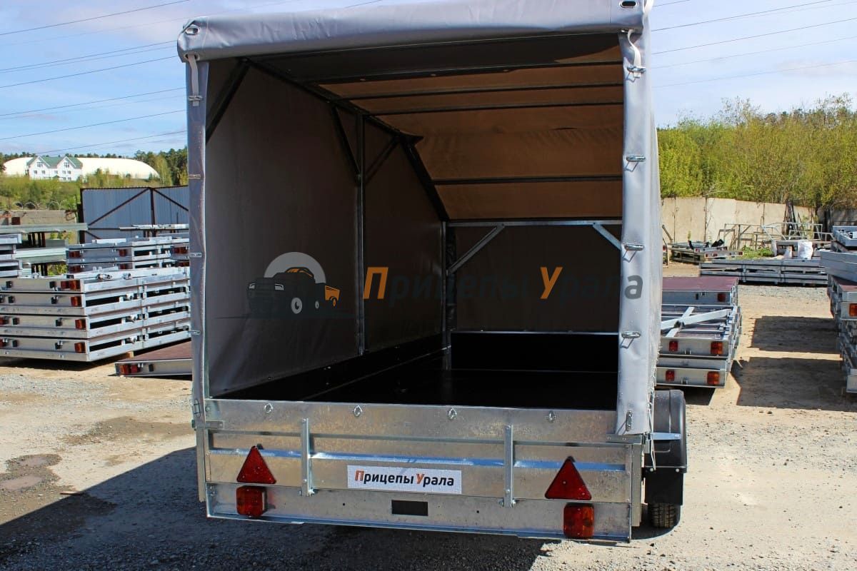 Пол платформы выполнен из фанеры толщиной 9 мм. Дополнительно можно установить тент с каркасом для защиты груза от атмосферных осадков и дорожной грязи. Тент выполнен из плотной тентовой ткани (600 г/м) с овальными люверсами и тросом с карабинами. Каркас оцинкованный, болтовой со стопорным крепежом.