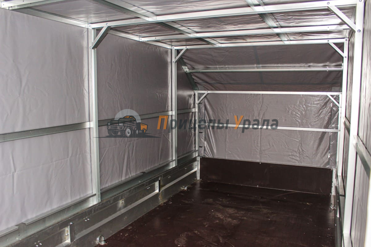 Дно прицепа выполнено из многослойной ламинированной влагостойкой фанеры с сетчатым противоскользящим покрытием.