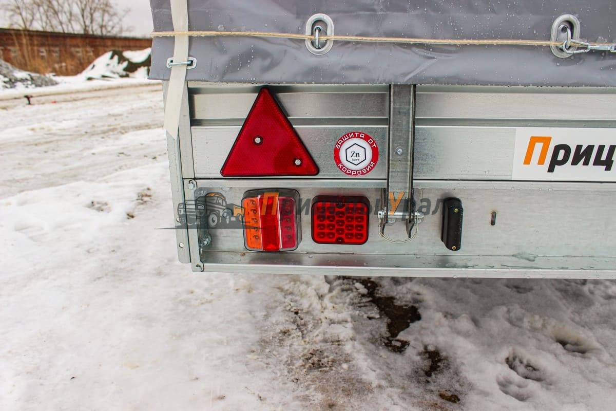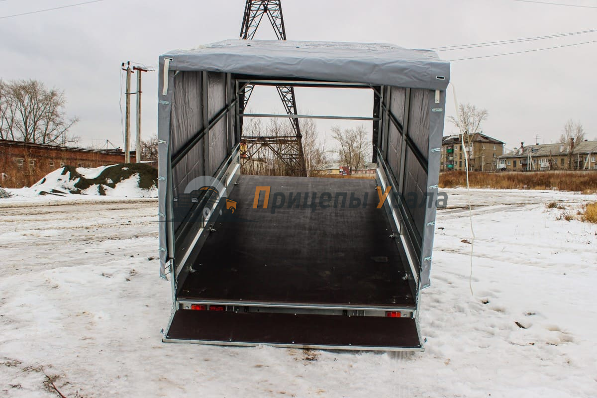 Открывающийся задний и передний борт, а также самосвальный механизм – назад значительно облегчает загрузку (выгрузку) различного вида грузов и самоходной техники. Борта выполнены из оцинкованного стального листа 1,5 мм толщиной с усилением ребром жёсткости. Ребро жёсткости позволяет повысить устойчивость бортов к динамическим и ударным нагрузкам.