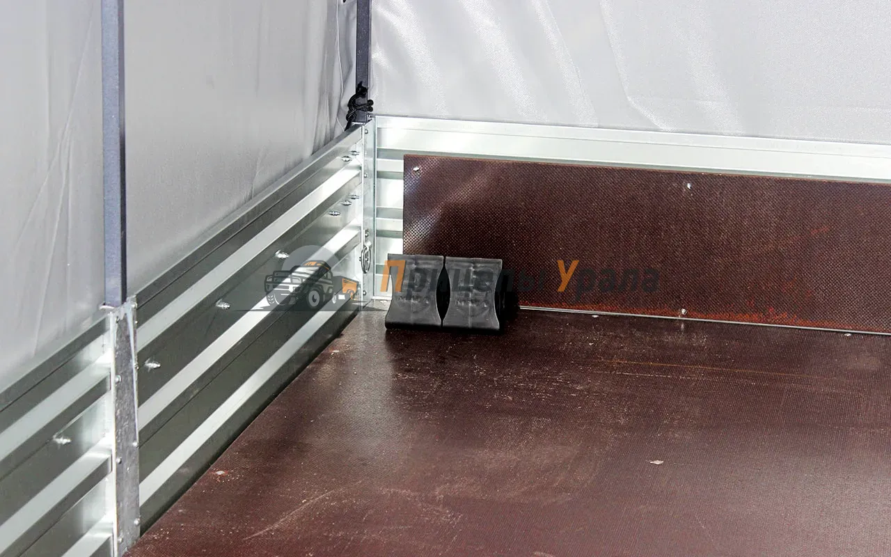 ● Дно прицепа выполнено из многослойной ламинированной фанеры с противоскользящим покрытием. Устойчиво к износу и воздействию влаги.