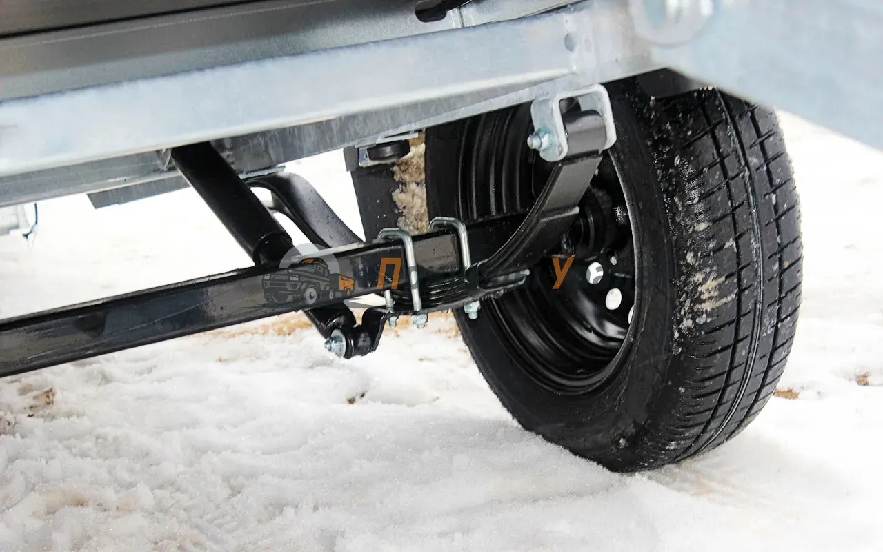 ● Рессорная подвеска (2 рессоры по 4 листа) с гидравлическими амортизаторами сохраняет стабильную плавность хода при разной загруженности прицепа.