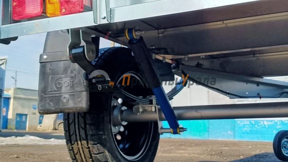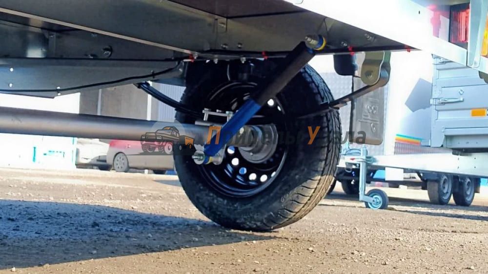 - Дышло переменного сечения с регулировкой сцепной головки по высоте и поперечиной для крепления запасного колеса.