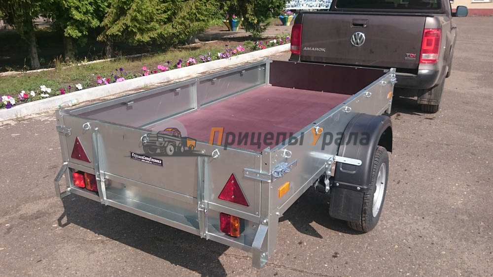 Прицеп ССТ-7132-02 полностью изготовлен из оцинкованного листа с применением лазерной технологии раскроя. Настил платформы и внутренние поверхности откидных бортов выполнены из влагостойкой фанеры толщиной 9 мм. Ось усиленная из трубы диаметром 60 мм. Наиболее сложные узлы подвески (такие как – ступицы, амортизаторы, подрессорники) применены от отечественных серийных автомобилей.