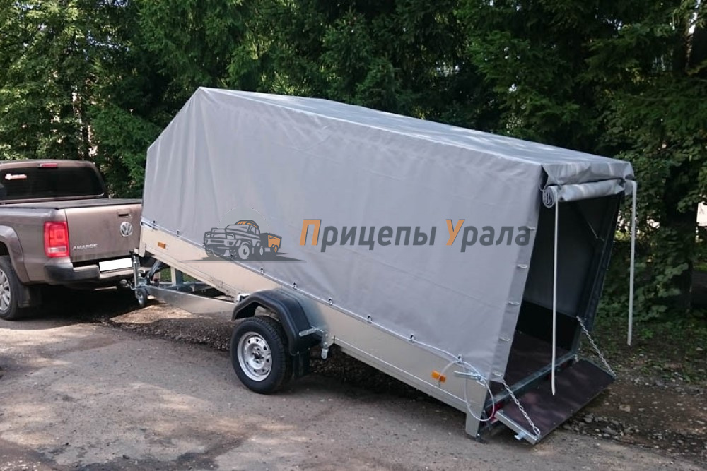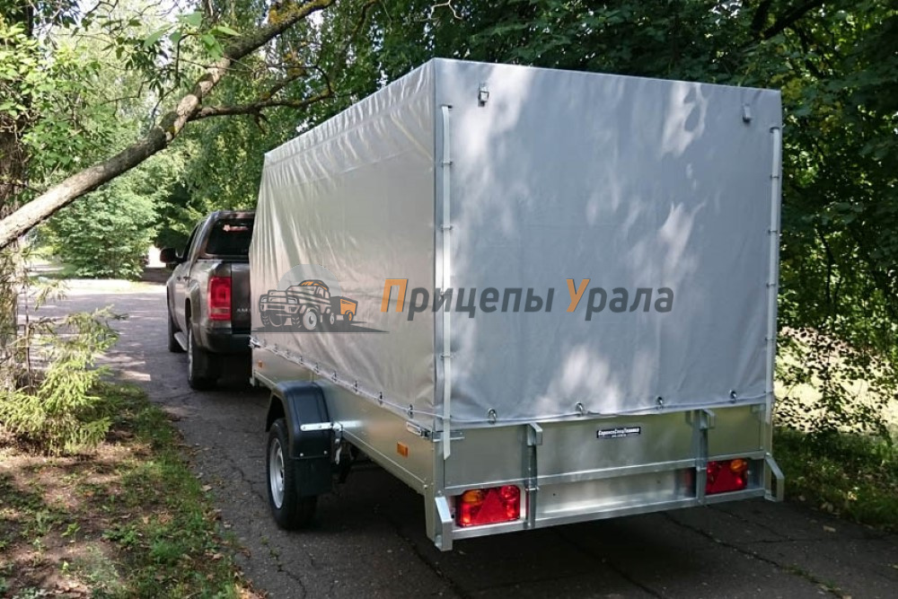Автоприцеп ССТ-7132-09-У (R13) - одноосный прицеп полностью изготовленный из оцинкованного листа с применением лазерной технологии раскроя. Настил платформы и внутренние поверхности откидных бортов выполнены из влагостойкой фанеры толщиной 9 мм. Наиболее сложные узлы подвески (такие как – ступицы, амортизаторы, подрессорники) применены от отечественных серийных автомобилей. Модель обладает функцией самосвала и дополнительно может комплектоваться кронштейном тали (лебедки) и автоматическим захватом платформы, что позволяет осуществлять загрузку/выгрузку снегоходов, квадроциклов, садовой техники.