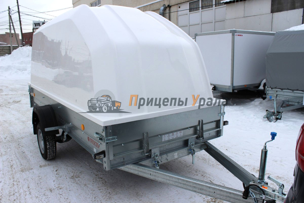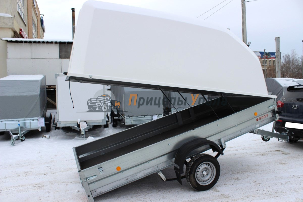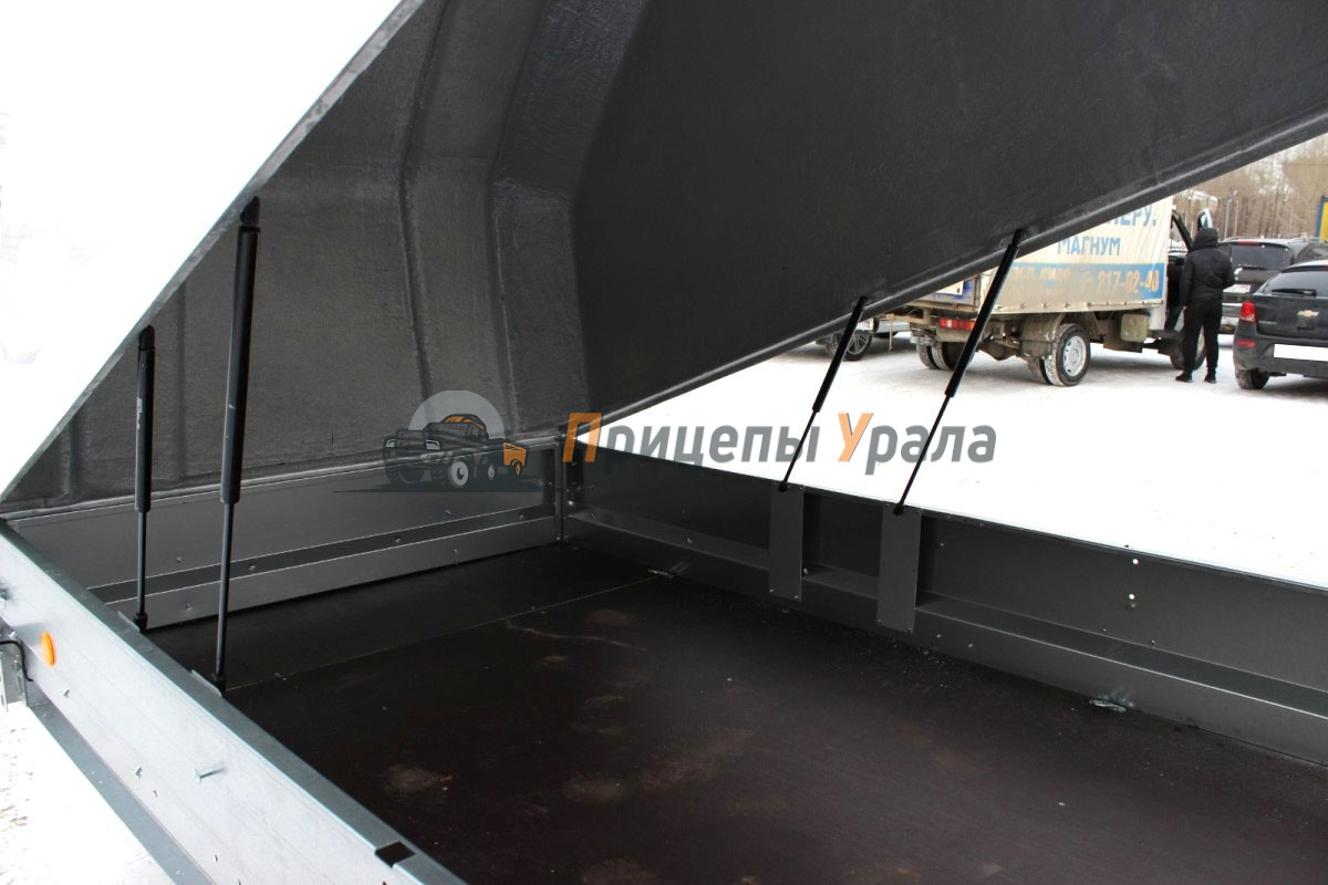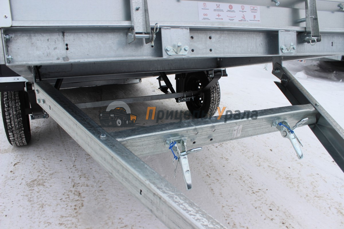 Прицеп Трейлер 829450 (3,5×1,5/R13/РЕС) — предназначен для перевозки квадроцикла, снегохода. Прицеп имеет функцию самосвала, что облегчает погрузку техники на прицеп. Антикоррозийное цинковое покрытие рамы и дышла, нанесенное методом горячего цинкования, обеспечит защиту на долгие годы. Рама прицепа на болтовом соединении. Прочные борта, из предварительно оцинкованной методом горячего цинкования стали толщиной 1,5 мм – боковые и толщиной 1,2 мм – передний и задний, надежно защищены от коррозии. Передний и задний борта откидные, легко съемные. Задний борт усилен фанерой, его можно использовать как трап для заезда. Рессорная подвеска с гидравлическими амортизаторами обеспечивает плавность хода прицепа во всем диапазоне эксплуатационных нагрузок. Пол из ламинированной фанеры, устойчивой к воздействию влаги. Предусмотрены петли для крепления груза.