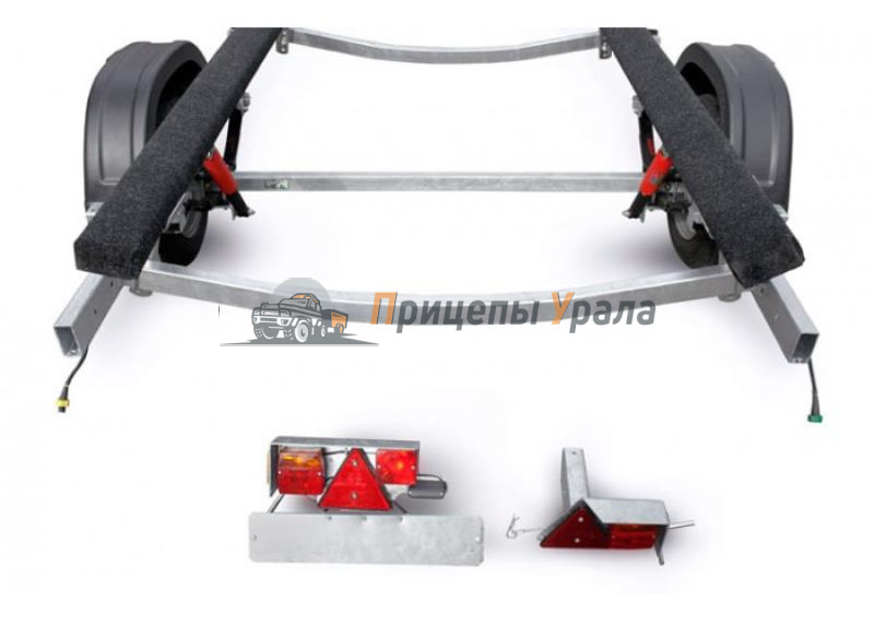 ● Усиленная оцинкованная стальная рама выполнена из замкнутого профиля, имеет большой запас прочности и позволяет уберечь жгут электропроводки от внешних повреждений по всей длине прицепа. Изогнутая конструкция поперечин рамы обеспечивает максимально низкую посадку судна, что снижает центр тяжести и повышает устойчивость прицепа во время движения.