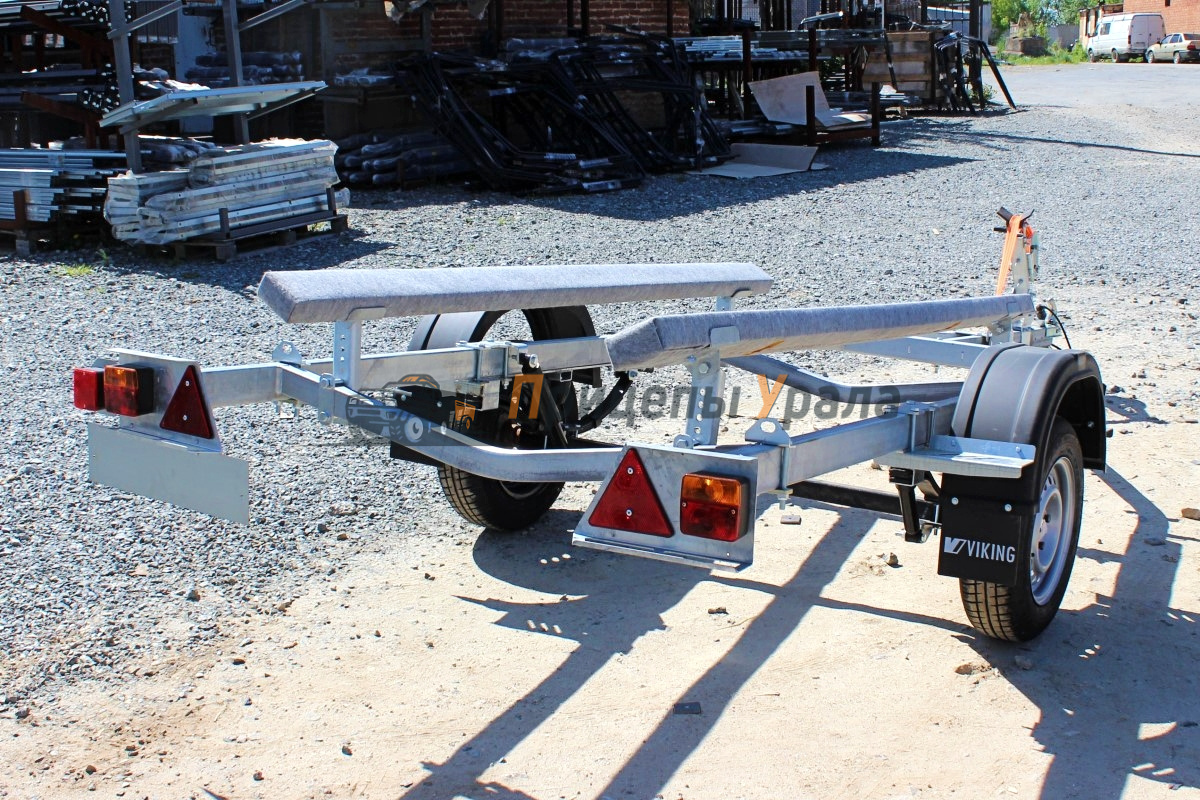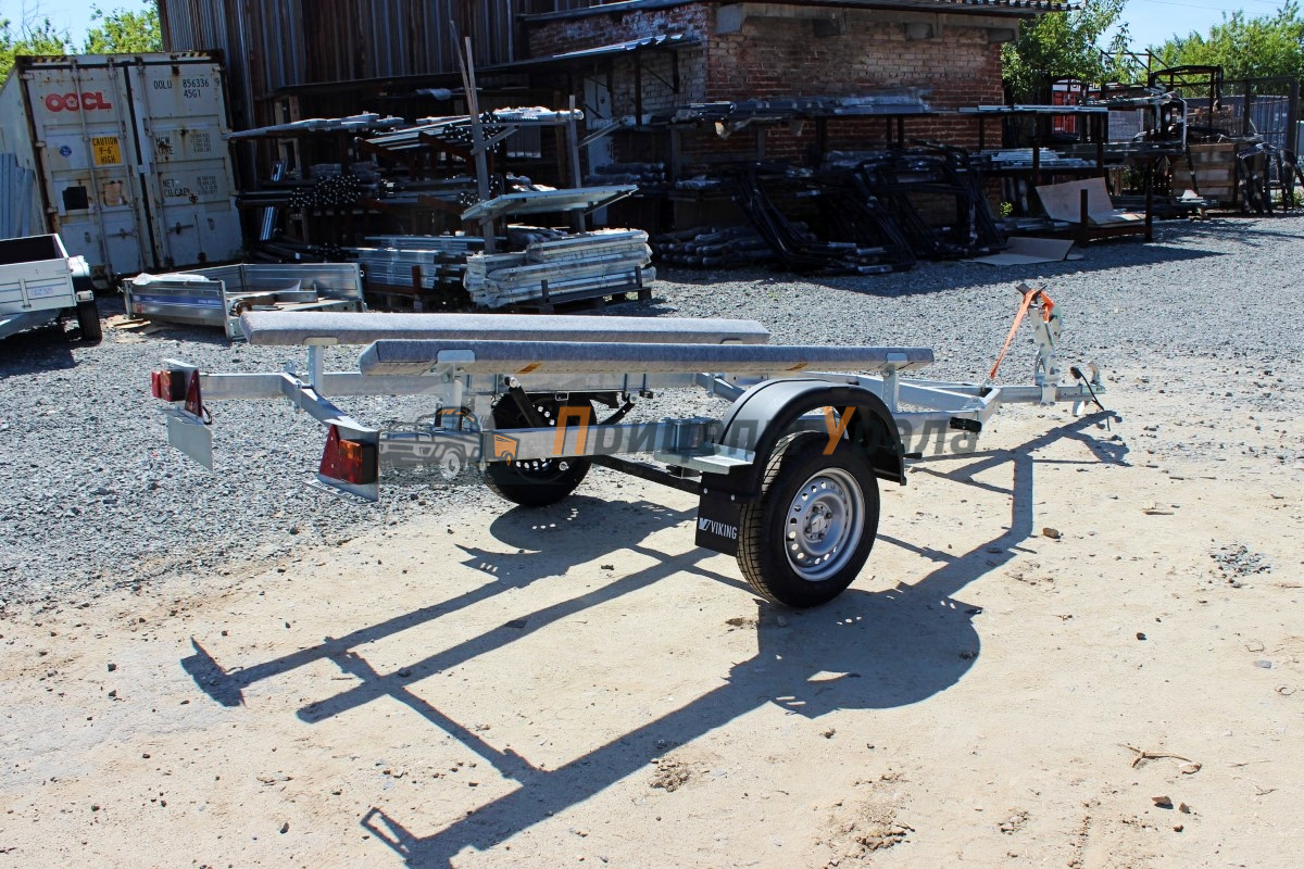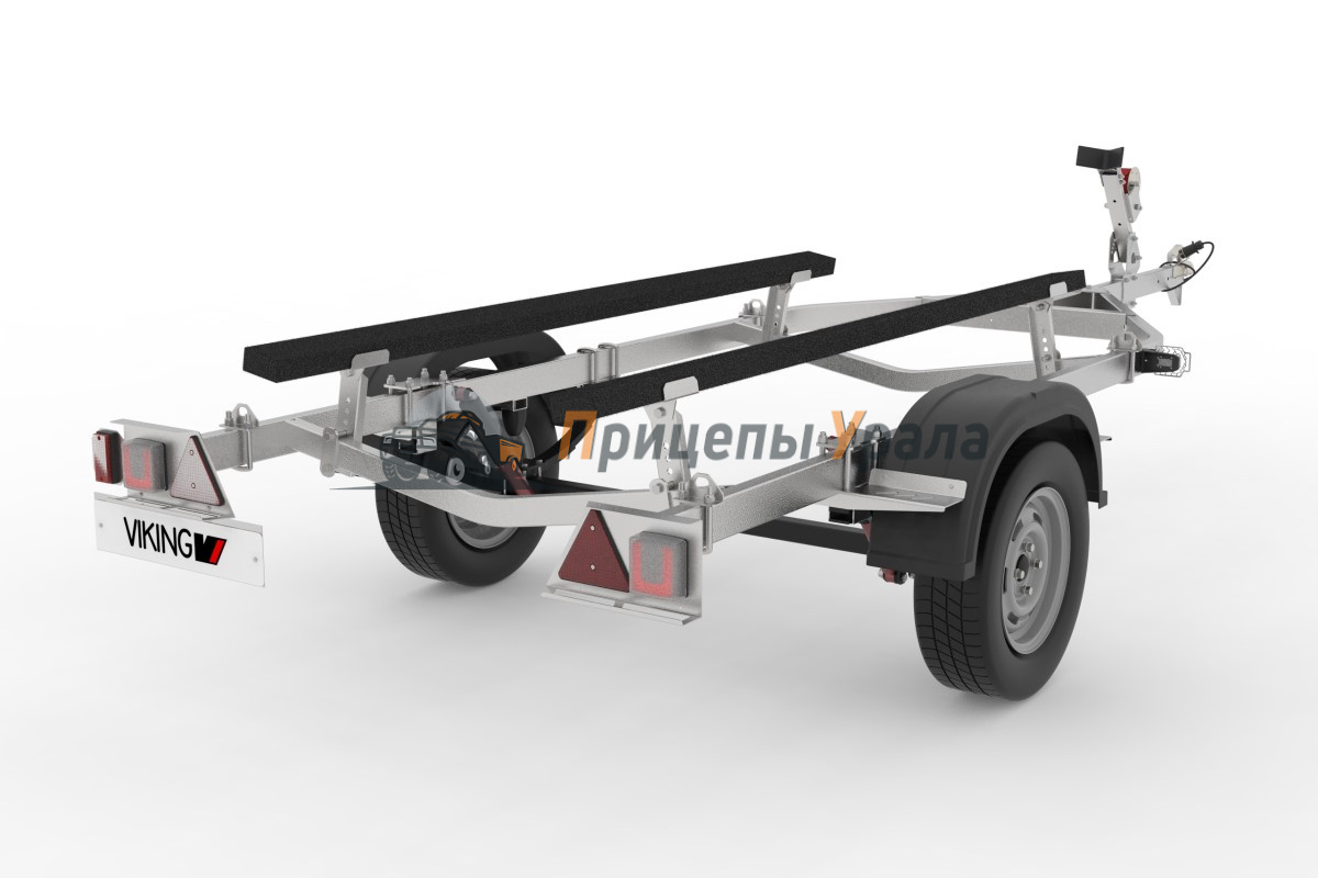 Автоприцеп «Викинг» 1345 L для лодки (R13) — полностью оцинкованный прицеп, одноосный. Предназначен для перевозки водной техники длиной до 4,2 метров. Подвеска прицепа рессорная c гидравлическими амортизаторами сохраняет стабильную плавность хода при разной загруженности прицепа. Передвижная ось позволяет правильно распределить центр тяжести перевозимого судна. Ось рассчитана на нагрузку 750 кг, ступицы оборудованы защитными колпаками, подшипники не требуют дополнительной смазки и регулировки на протяжении всего срока службы. Положение ложементов регулируется по ширине и высоте, что позволяет перевозить суда с различными углами килеватости.