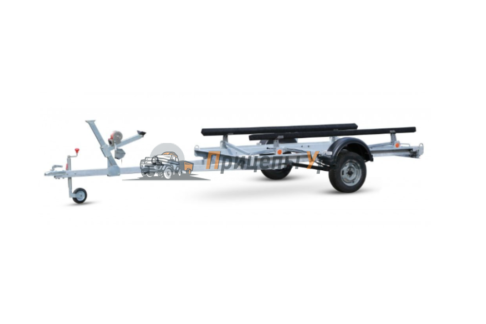 Самосвал, лебедка с носовым упором и килевой ролик дают возможность погрузки и разгрузки водного транспорта с участием одного человека. Кронштейн с лебедкой может передвигаться по удлинителю дышла, лебедка также регулируется по высоте.