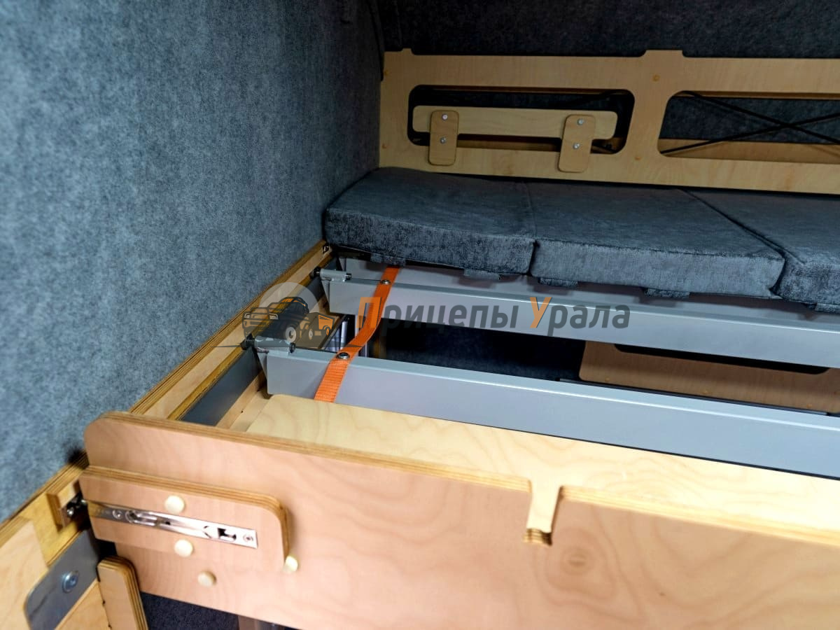 Складывается к задней стенке спальной зоны.