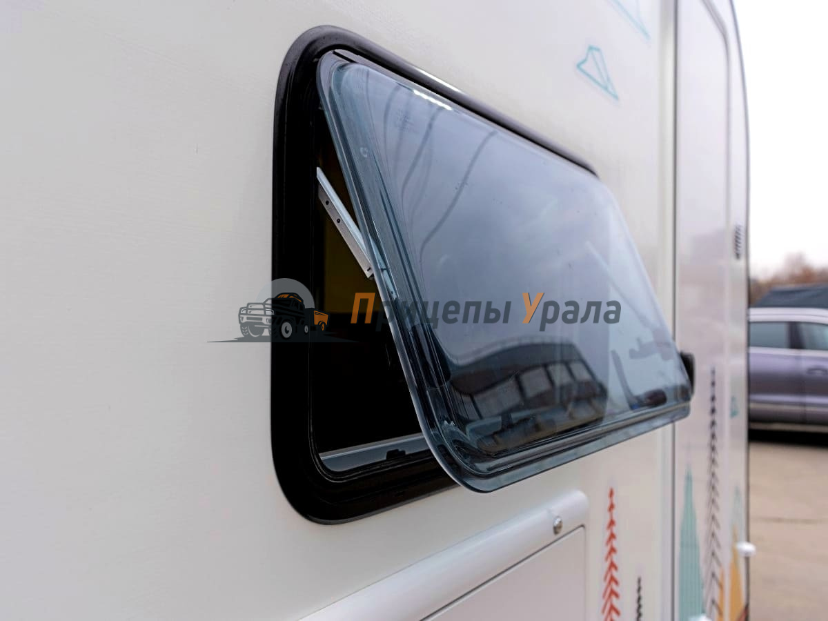 С откидным открыванием, двойной акрил, внутренняя рамка с встроенными москитной сеткой и шторкой на заднюю панель.