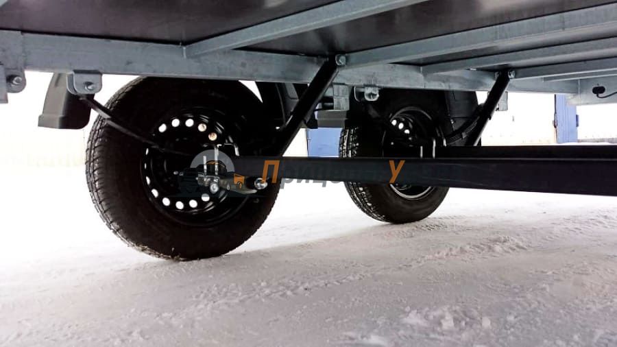 Пол платформы выполнен из фанеры толщиной 9 мм. Дополнительно можно установить тент с каркасом для защиты груза от атмосферных осадков и дорожной грязи. Тент выполнен из плотной тентовой ткани (650 г/м) с овальными люверсами и тросом с карабинами. Каркас оцинкованный, болтовой.