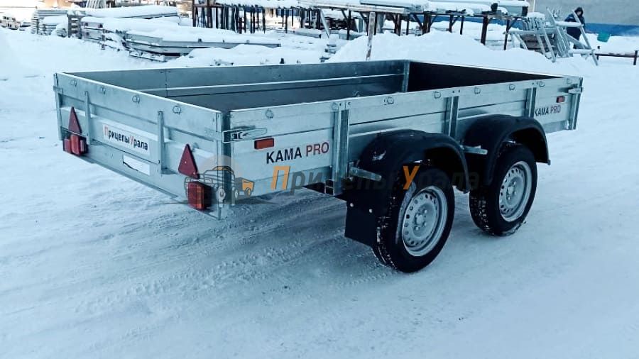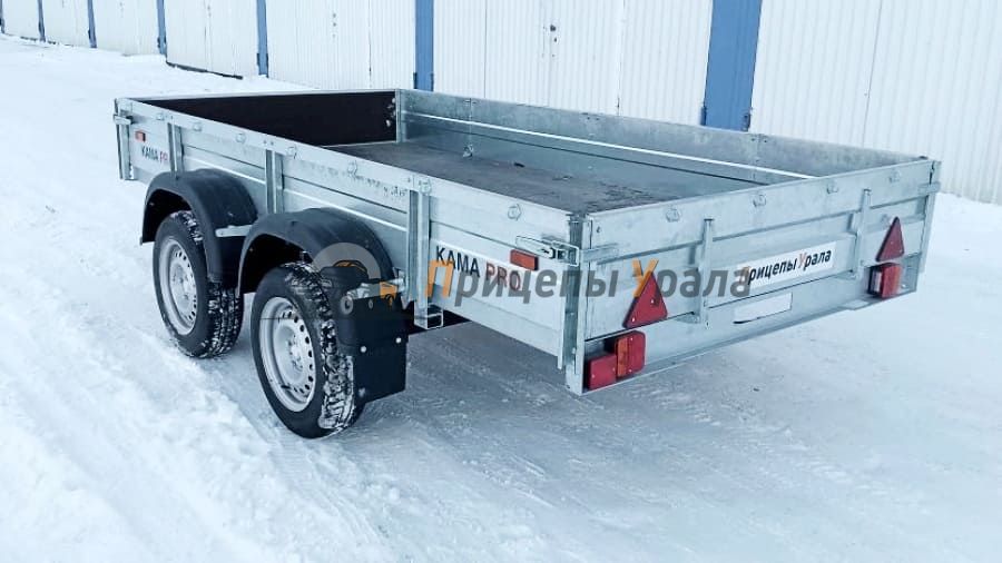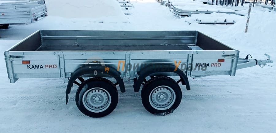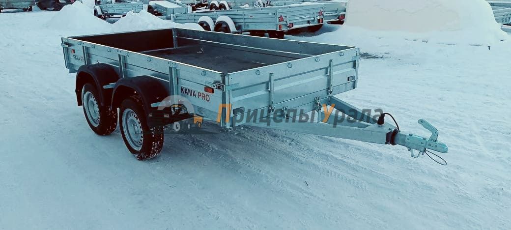 Автоприцеп "КАМА PRO" 3015 двухосный (R13) рестайлинг — полностью оцинкованный бортовой прицеп с самосвальной платформой, двухосный. Предназначен для перевозки грузов общего назначения, отлично подходит для перевозки квадроциклов и снегоходов.