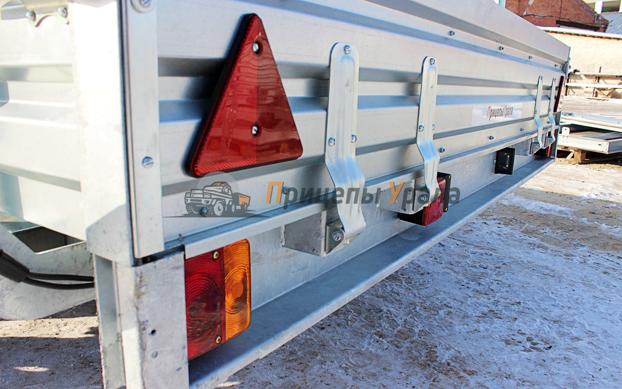 ● Оцинкованные стальные стойки бортов оборудованы петлями крепления груза (4 шт.). Благодаря дополнительным разделительным стойкам повышается жёсткость бортов и их сопротивление излому.