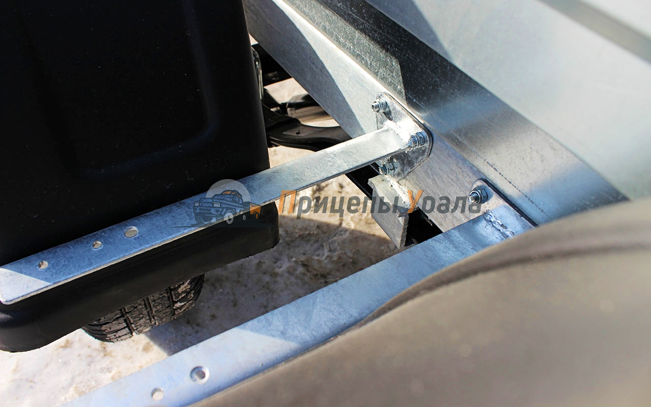 ● Ходовая часть прицепа крепится к специальному силовому подрамнику, который принимает на себя основные ударные нагрузки во время езды и повышает надёжность конструкции.