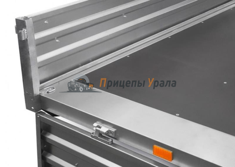 ● Откидные борта дают возможность осуществлять загрузку и выгрузку с любой стороны платформы. Они выполнены из оцинкованного стального листа (толщина 1,5 мм) с дополнительной штамповкой рёбер жёсткости. Рёбра жёсткости позволяют повысить устойчивость бортов к динамическим/ударным нагрузкам. Борта и стойки бортов — съёмные.