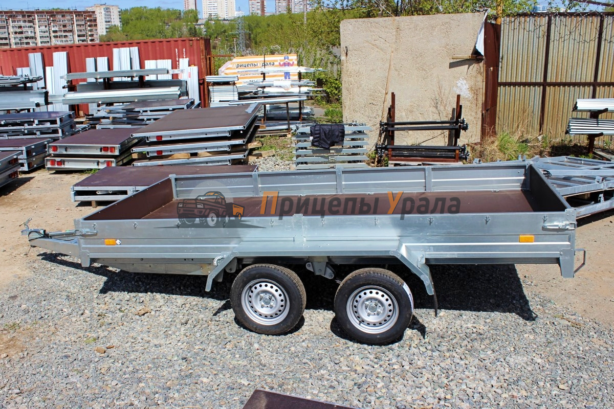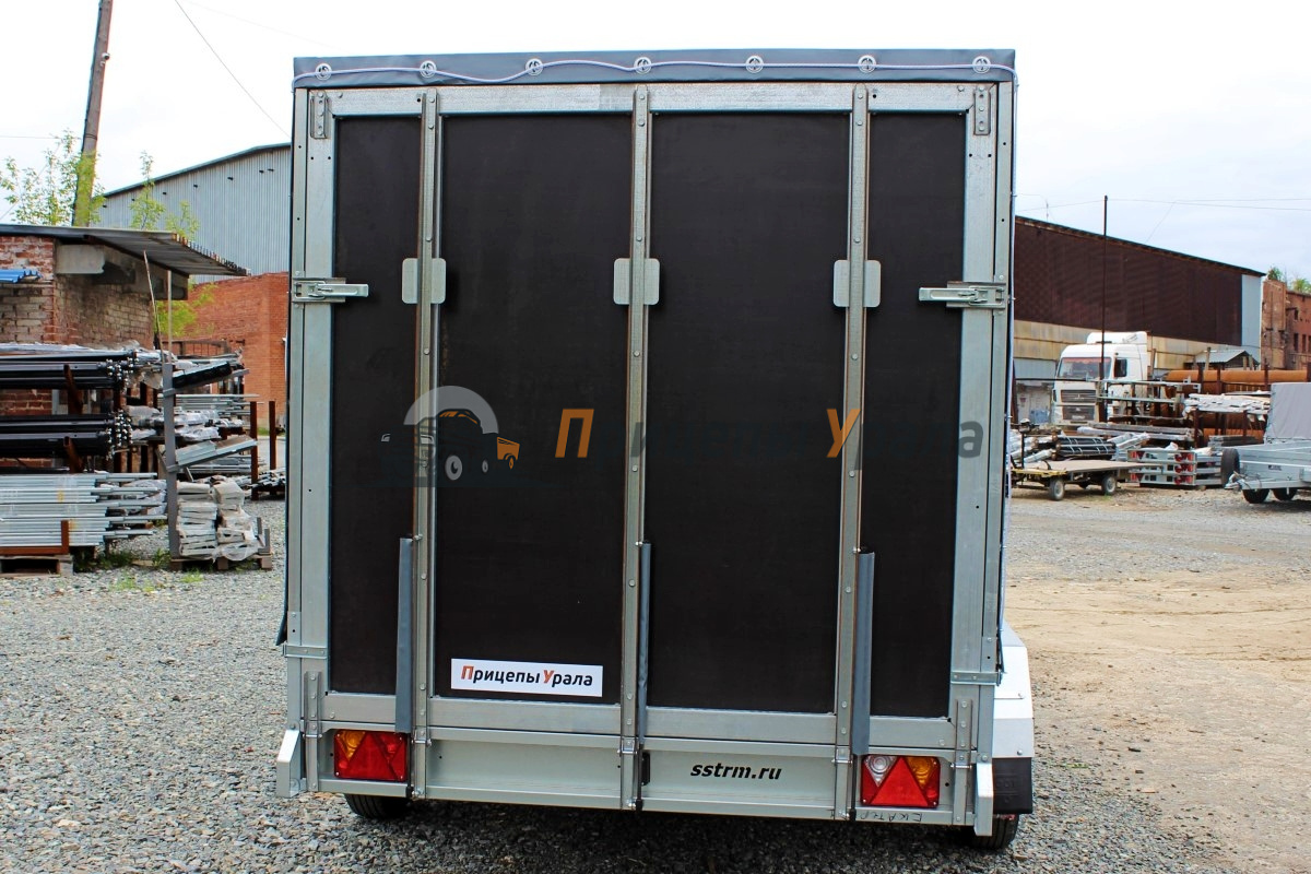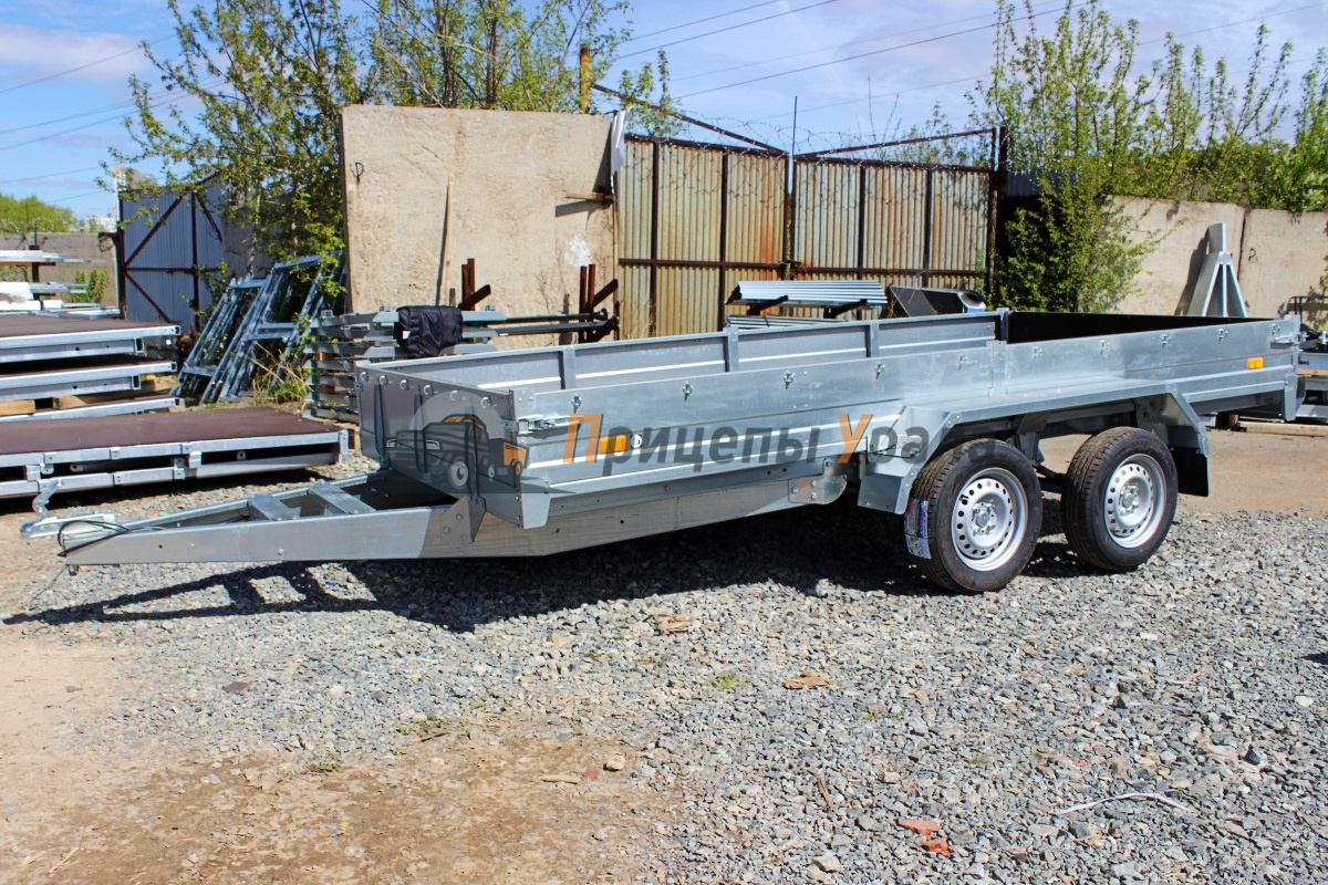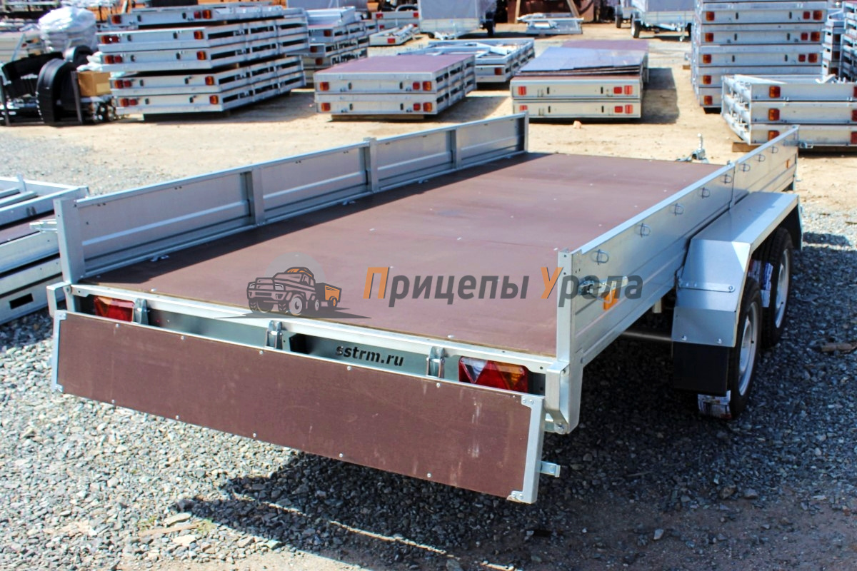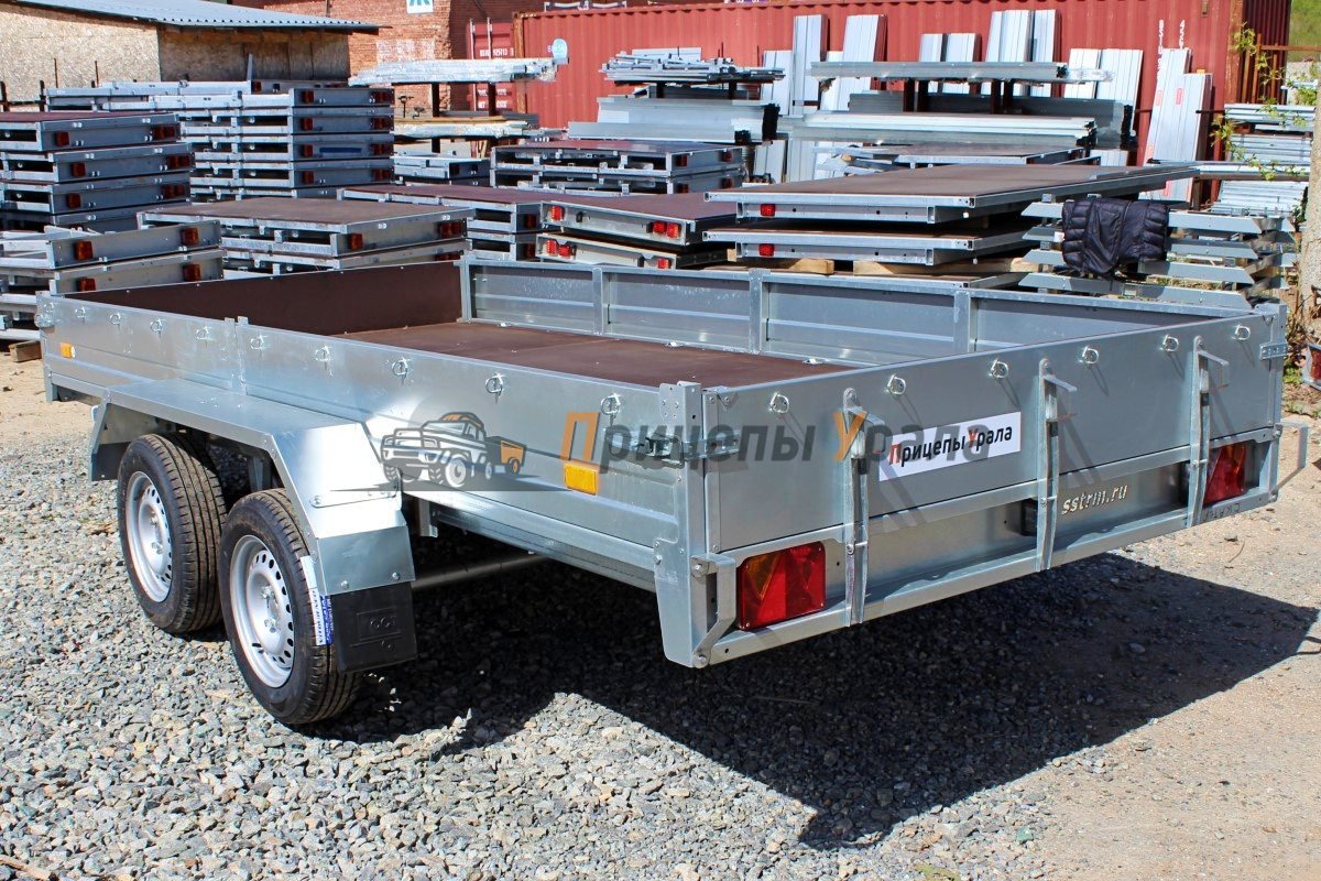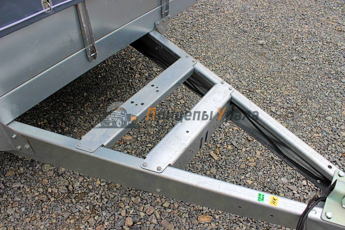Прицеп ССТ-7132-61 - двухосный прицеп с увеличенной шириной и длиной кузова 3722 на 1768 мм. Прицеп полностью выполнен из качественного оцинкованного листа с применением лазерной технологии раскроя. Дышло переменного сечения с регулировкой сцепной головки по высоте и поперечиной для крепления запасного колеса. Передний и задний борта откидные, боковые борта выполнены съёмными на болтовых соединениях. Настил платформы и внутренние поверхности откидных бортов выполнены из влагостойкой фанеры толщиной 9 мм. Оси усиленные из толстостенной трубы диаметром 60 мм. Данная модель ССТ оснащена рессорно-балансирной подвеской.