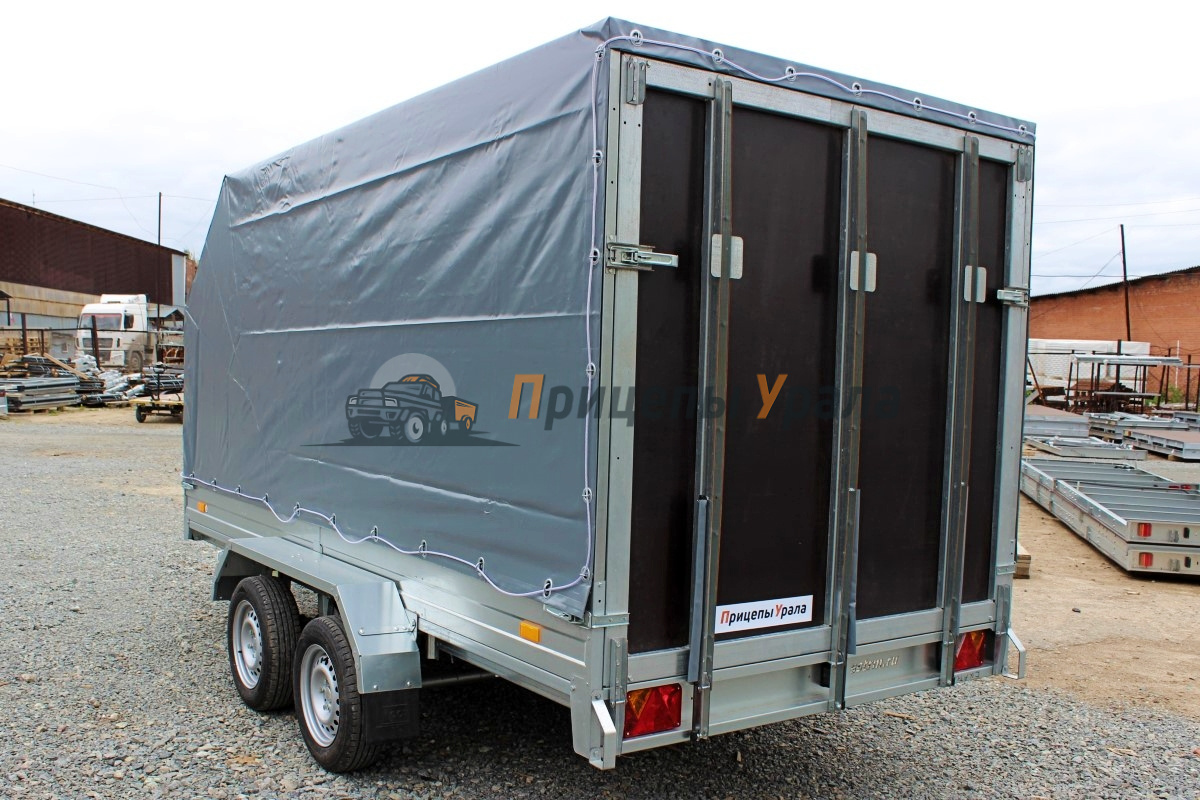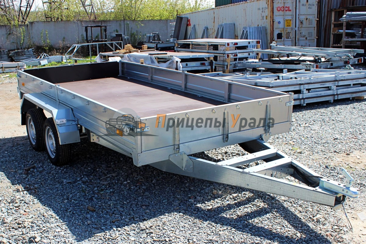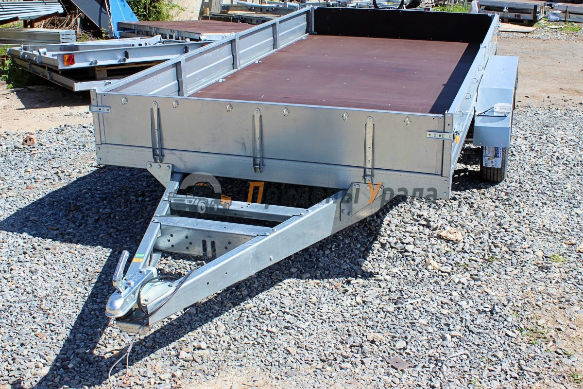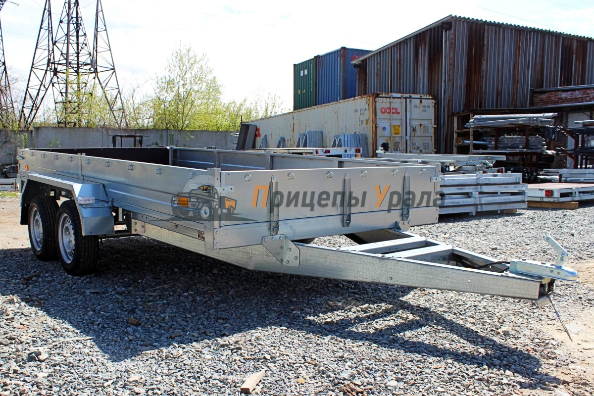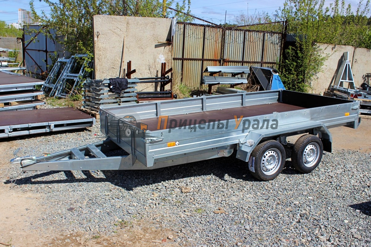 Прицеп ССТ-7132-61 - двухосный прицеп с увеличенной шириной и длиной кузова 3722 на 1768 мм. Прицеп полностью выполнен из качественного оцинкованного листа с применением лазерной технологии раскроя. Дышло переменного сечения с регулировкой сцепной головки по высоте и поперечиной для крепления запасного колеса. Передний и задний борта откидные, боковые борта выполнены съёмными на болтовых соединениях. Настил платформы и внутренние поверхности откидных бортов выполнены из влагостойкой фанеры толщиной 9 мм. Оси усиленные из толстостенной трубы диаметром 60 мм. Данная модель ССТ оснащена рессорно-балансирной подвеской.