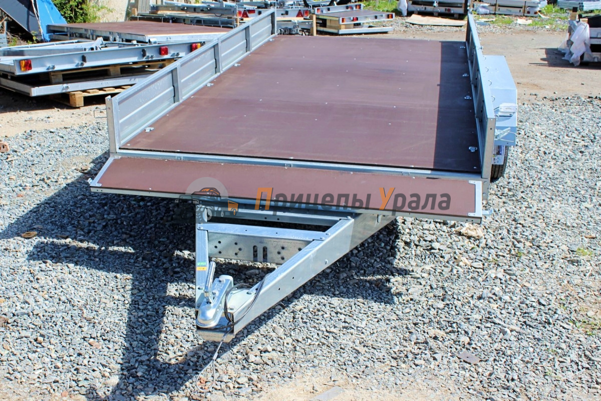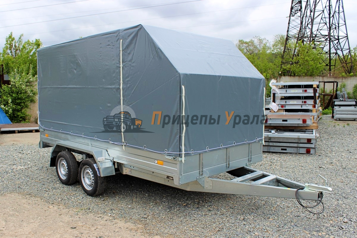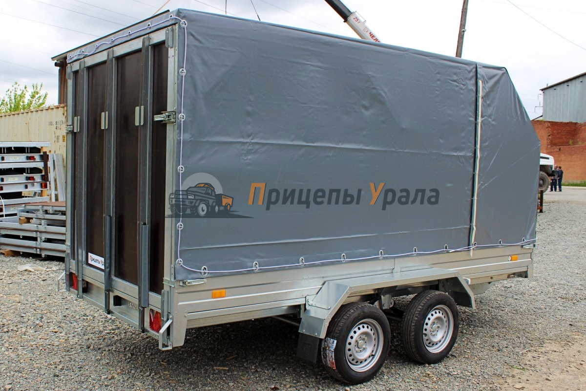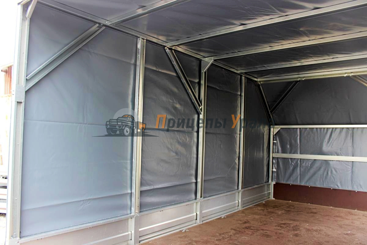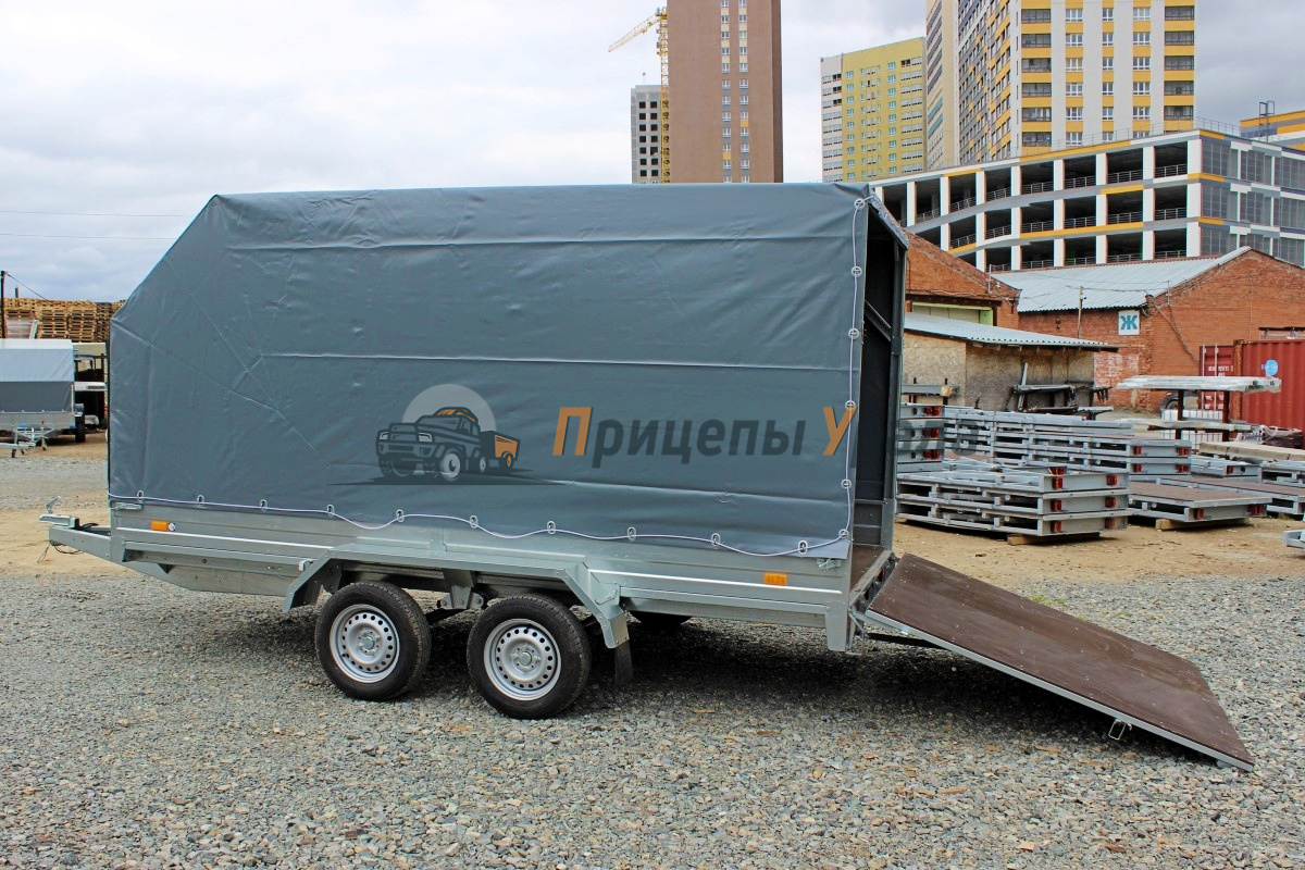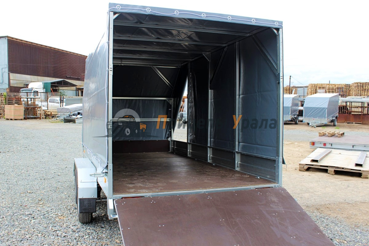 Прицеп ССТ-7132-61 - двухосный прицеп с увеличенной шириной и длиной кузова 3722 на 1768 мм. Прицеп полностью выполнен из качественного оцинкованного листа с применением лазерной технологии раскроя. Дышло переменного сечения с регулировкой сцепной головки по высоте и поперечиной для крепления запасного колеса. Передний и задний борта откидные, боковые борта выполнены съёмными на болтовых соединениях. Настил платформы и внутренние поверхности откидных бортов выполнены из влагостойкой фанеры толщиной 9 мм. Оси усиленные из толстостенной трубы диаметром 60 мм. Данная модель ССТ оснащена рессорно-балансирной подвеской.