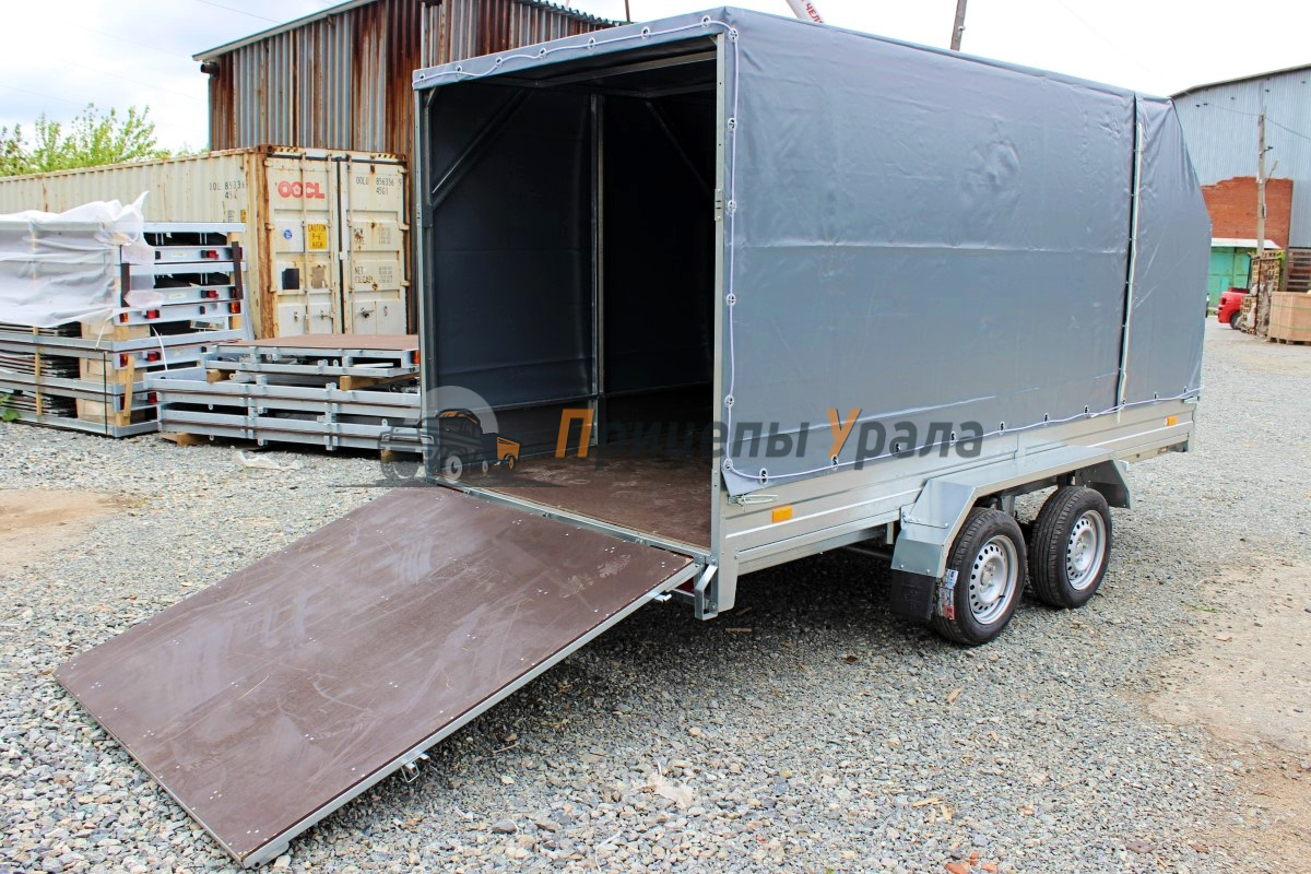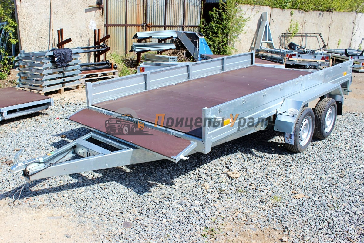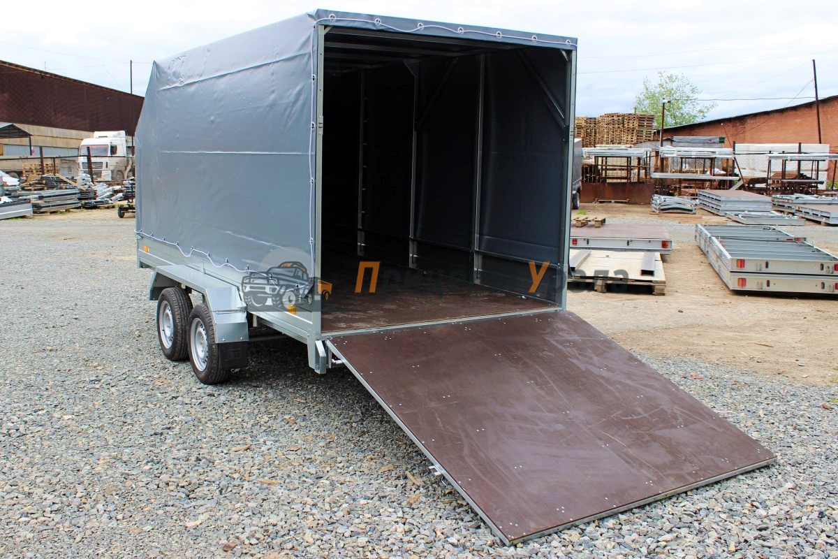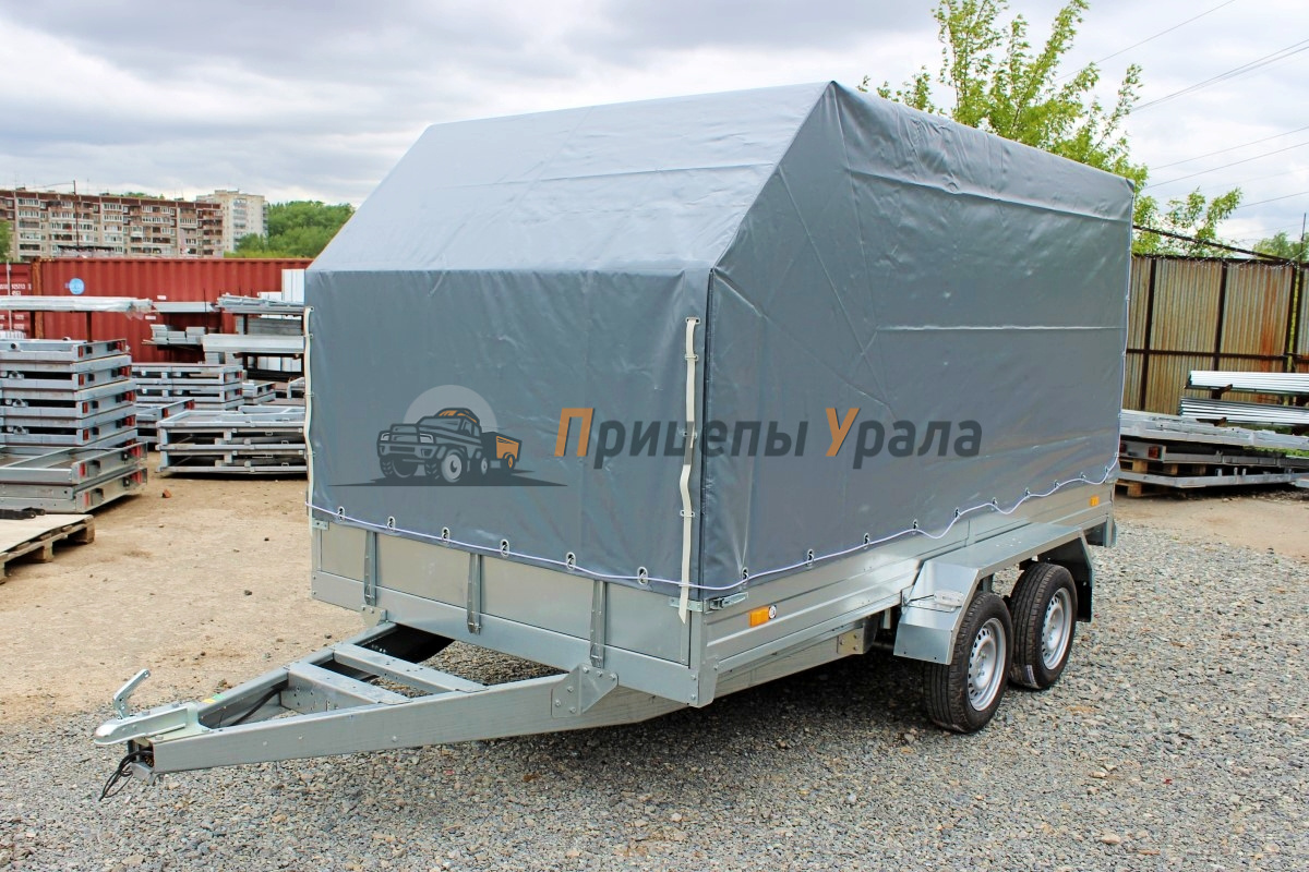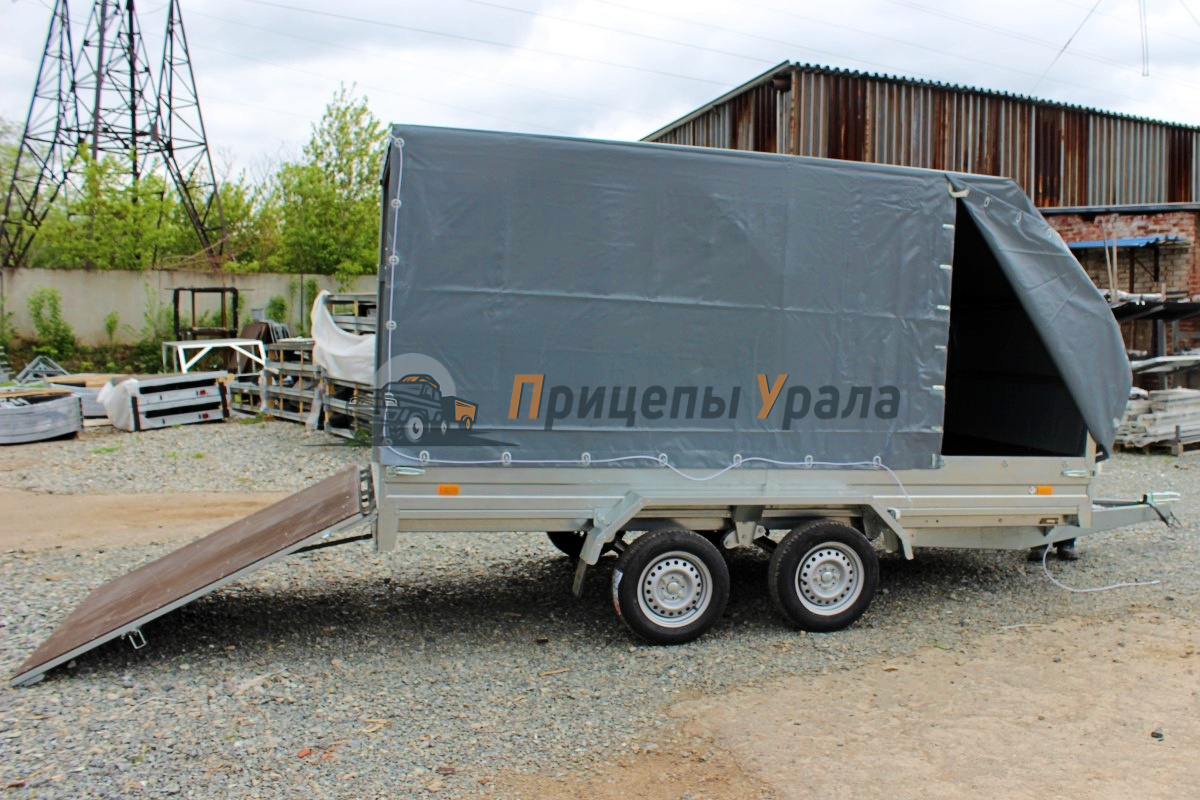 Прицеп ССТ-7132-61 - двухосный прицеп с увеличенной шириной и длиной кузова 3722 на 1768 мм. Прицеп полностью выполнен из качественного оцинкованного листа с применением лазерной технологии раскроя. Дышло переменного сечения с регулировкой сцепной головки по высоте и поперечиной для крепления запасного колеса. Передний и задний борта откидные, боковые борта выполнены съёмными на болтовых соединениях. Настил платформы и внутренние поверхности откидных бортов выполнены из влагостойкой фанеры толщиной 9 мм. Оси усиленные из толстостенной трубы диаметром 60 мм. Данная модель ССТ оснащена рессорно-балансирной подвеской.