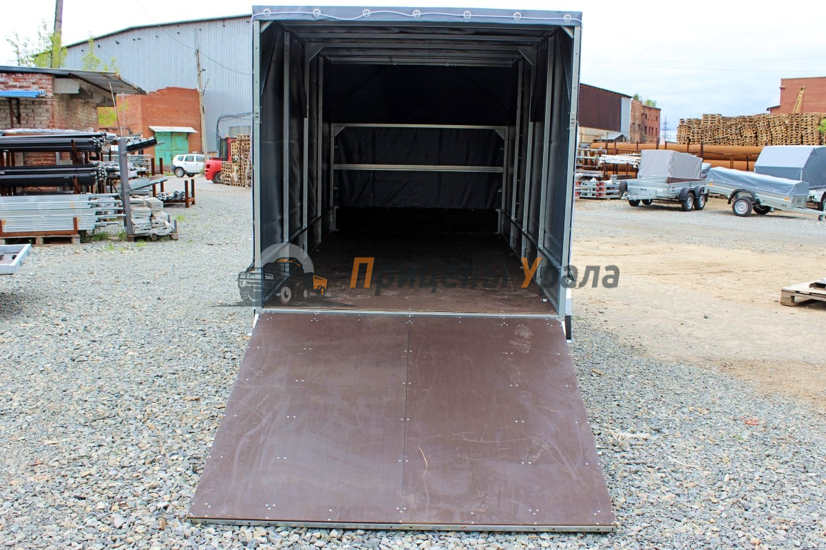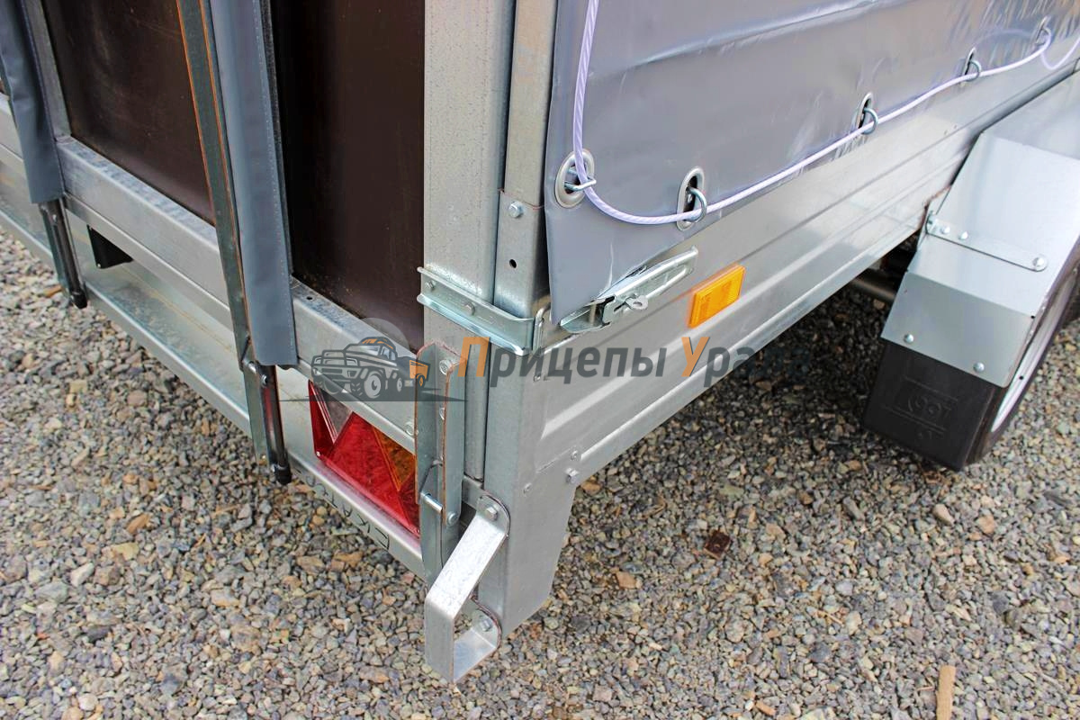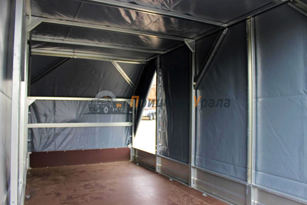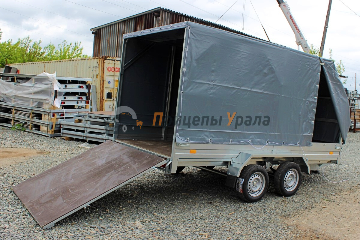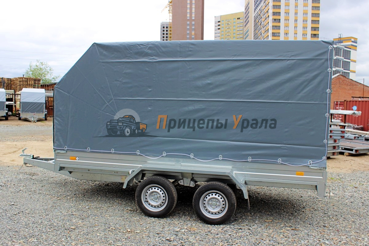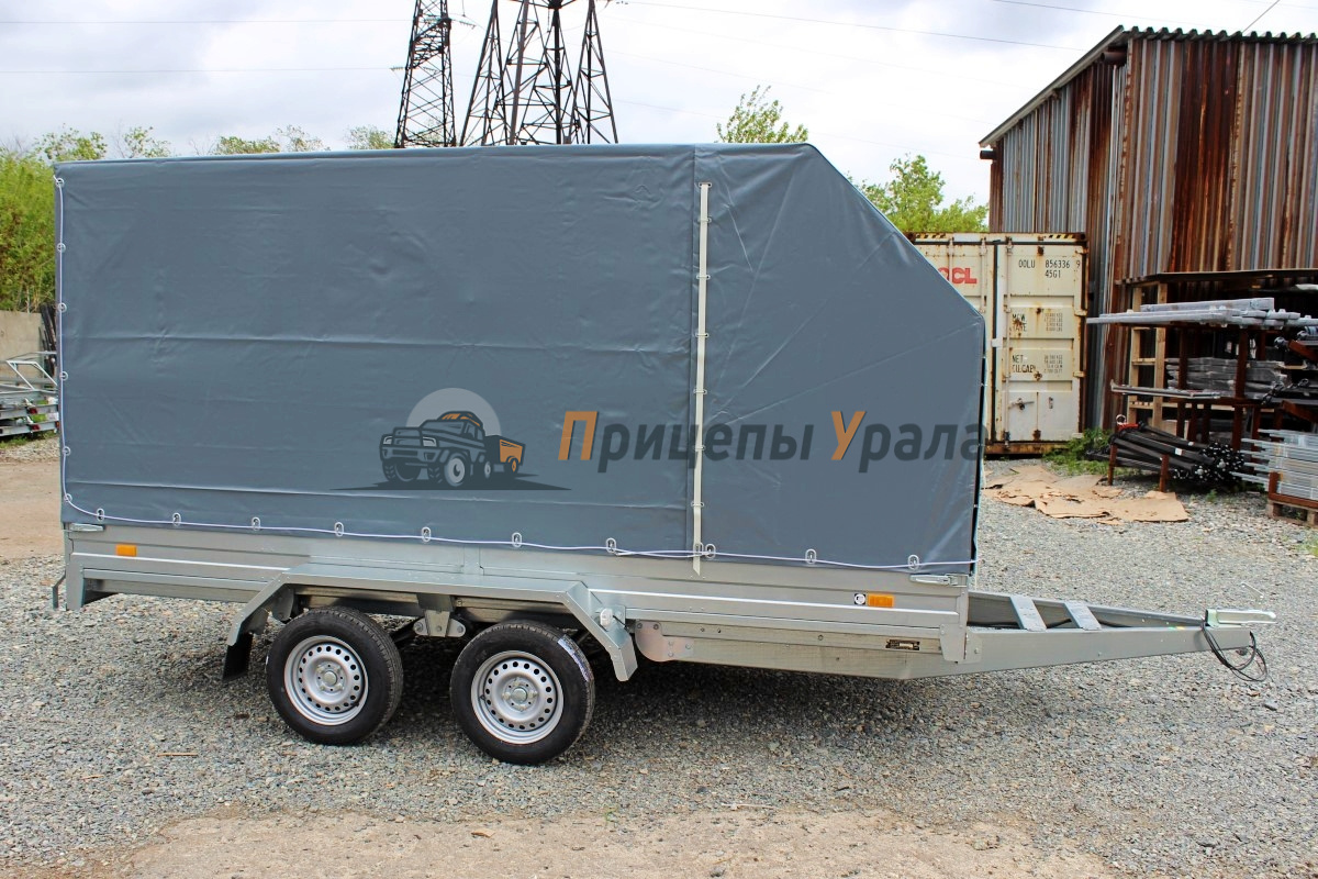 Прицеп ССТ-7132-61 - двухосный прицеп с увеличенной шириной и длиной кузова 3722 на 1768 мм. Прицеп полностью выполнен из качественного оцинкованного листа с применением лазерной технологии раскроя. Дышло переменного сечения с регулировкой сцепной головки по высоте и поперечиной для крепления запасного колеса. Передний и задний борта откидные, боковые борта выполнены съёмными на болтовых соединениях. Настил платформы и внутренние поверхности откидных бортов выполнены из влагостойкой фанеры толщиной 9 мм. Оси усиленные из толстостенной трубы диаметром 60 мм. Данная модель ССТ оснащена рессорно-балансирной подвеской.