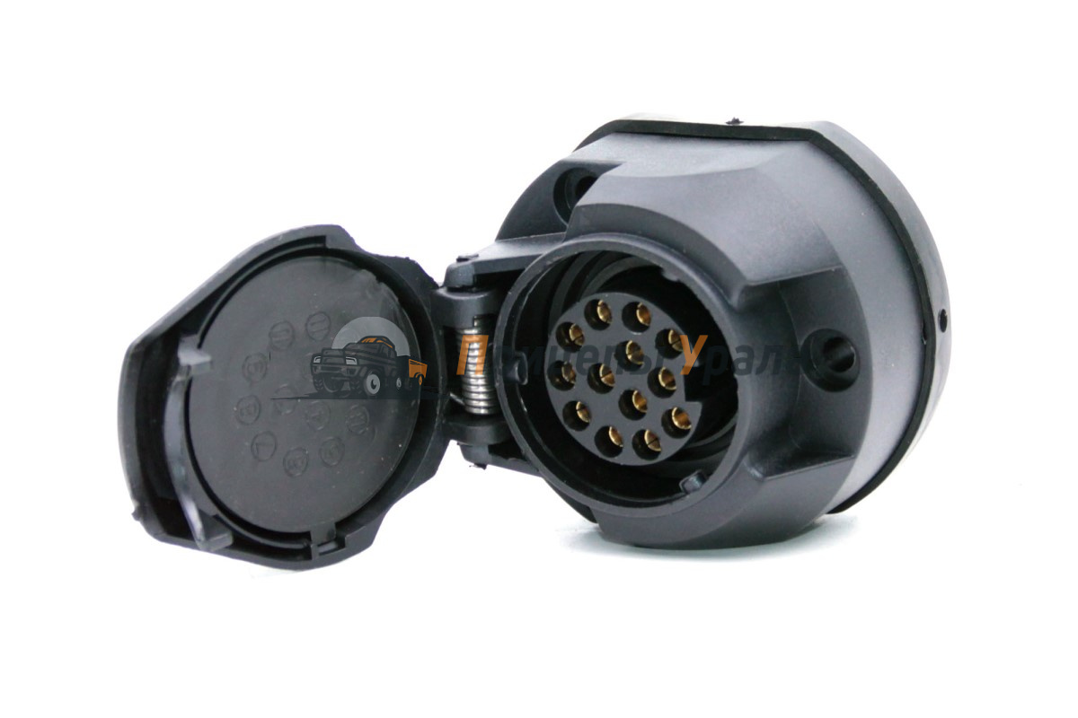 Розетка 13-контактная TRAILERCOM TM 3008 для подключения электрики прицепа к автомобилю, пластиковый корпус, имеется пыльник (уплотнитель)