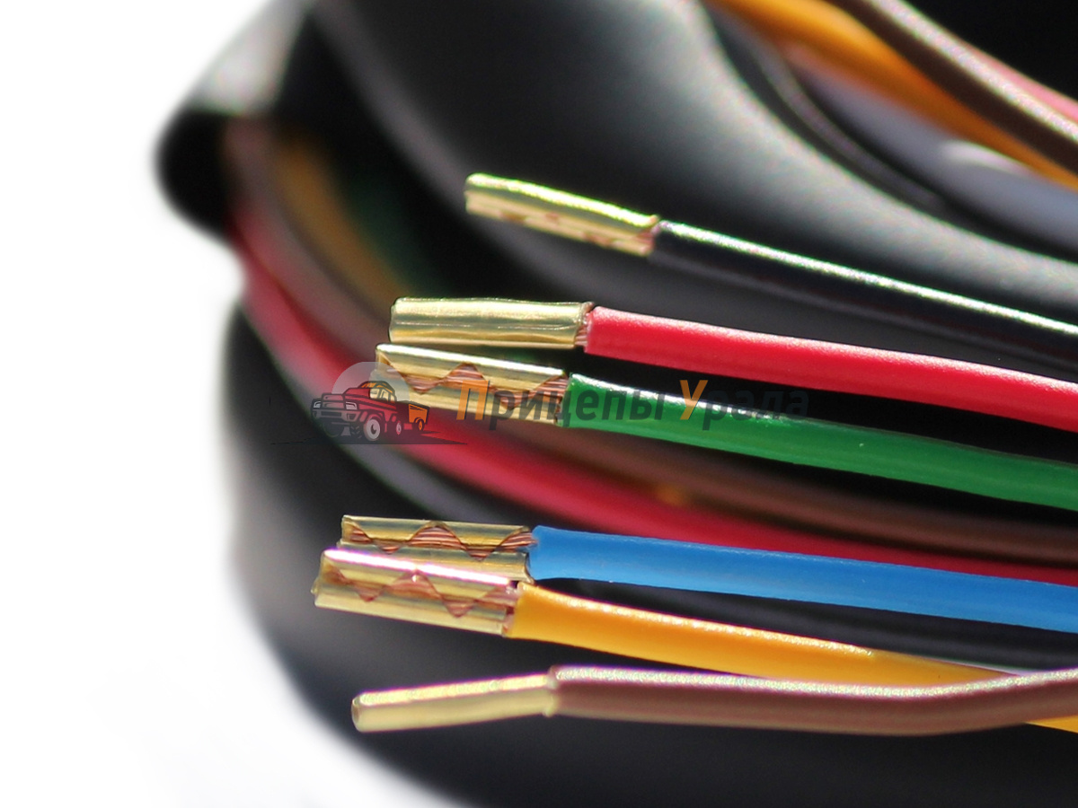 Сечение проводников: 6 проводов 0,5мм2 (красный, синий, желтый, зеленый, коричневый, черный) длина 1,7 метра, 1 проводник 1,0мм2 (белый) длина 1,6 метра.
