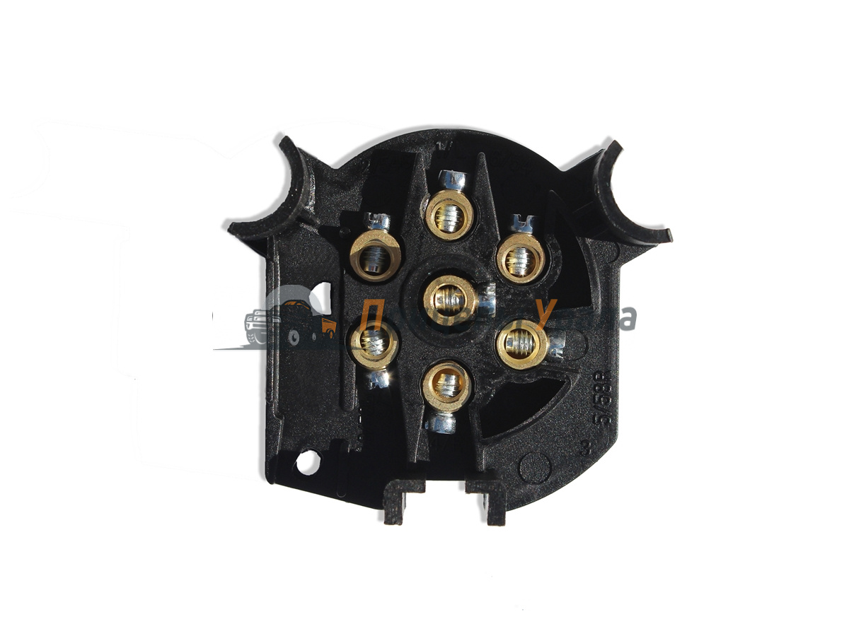 Розетка 7-контактная с резиновым уплотнителем (пыльником) предназначена для подключения электрики прицепного устройства. Корпус розетки изловлен из высококачественного пластика, соединительные контакты изготовлены из латуни.