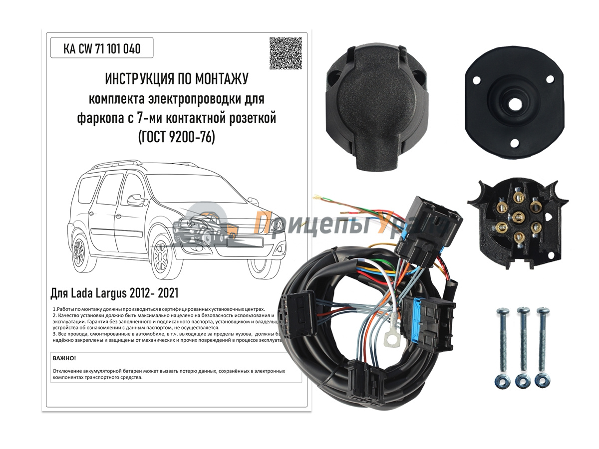 Штатная электрика предназначена для быстрого подключения фаркопа к бортовой сети автомобиля Lada Largus. Подключение осуществляется к штатным разъемам задних фонарей. Такой способ подключения исключает вмешательство в электрическую сеть автомобиля и позволяет смонтировать электропроводку фаркопа быстро и самостоятельно.