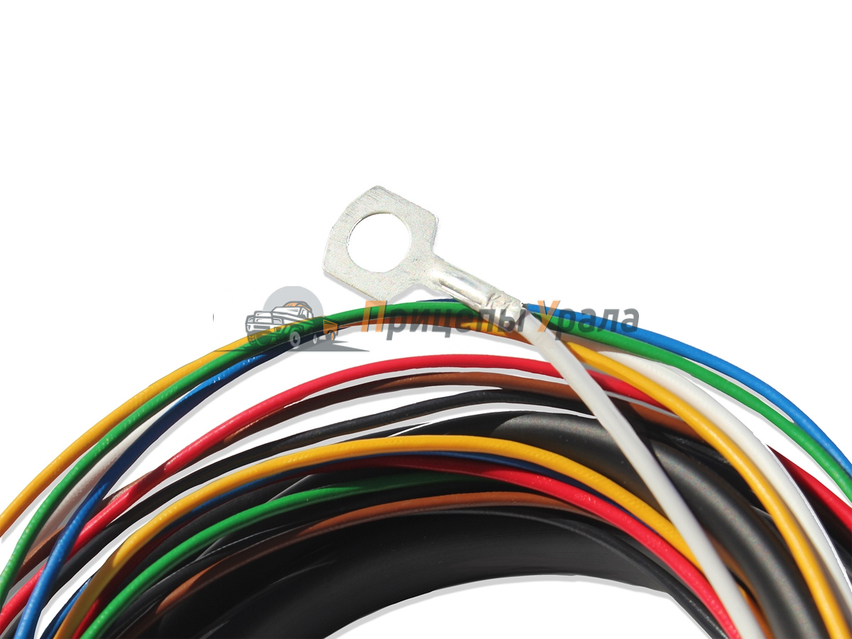 Обработка кабеля наконечниками: На концы проводов, подключаемые к розетке ТСУ, установлены металлические наконечники, с другой стороны провода оснащены штатными колодками для подключения "в разрыв" задних фонарей, кроме провода 1,0мм2 (белый) на нем установлена клемма-кольцо с внутренним диаметром 6,2-6,8мм для установки под гайку М6 ("Масса").