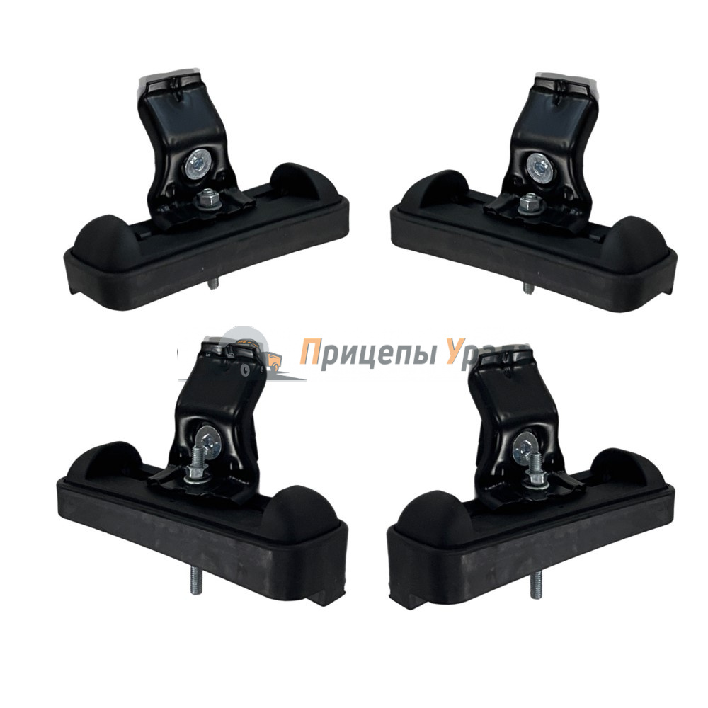 Комплект включает в себя набор резиновых подушек, крепежных скоб, болтов и других крепежных элементов, необходимых для установки багажника на автомобиль.