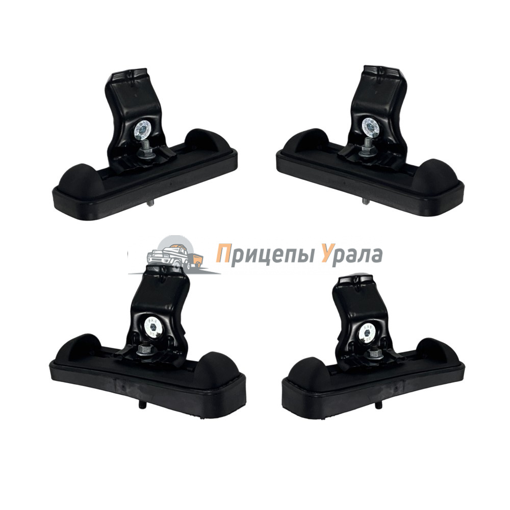 Комплект включает в себя набор резиновых подушек, крепежных скоб, болтов и других крепежных элементов, необходимых для установки багажника на автомобиль.
