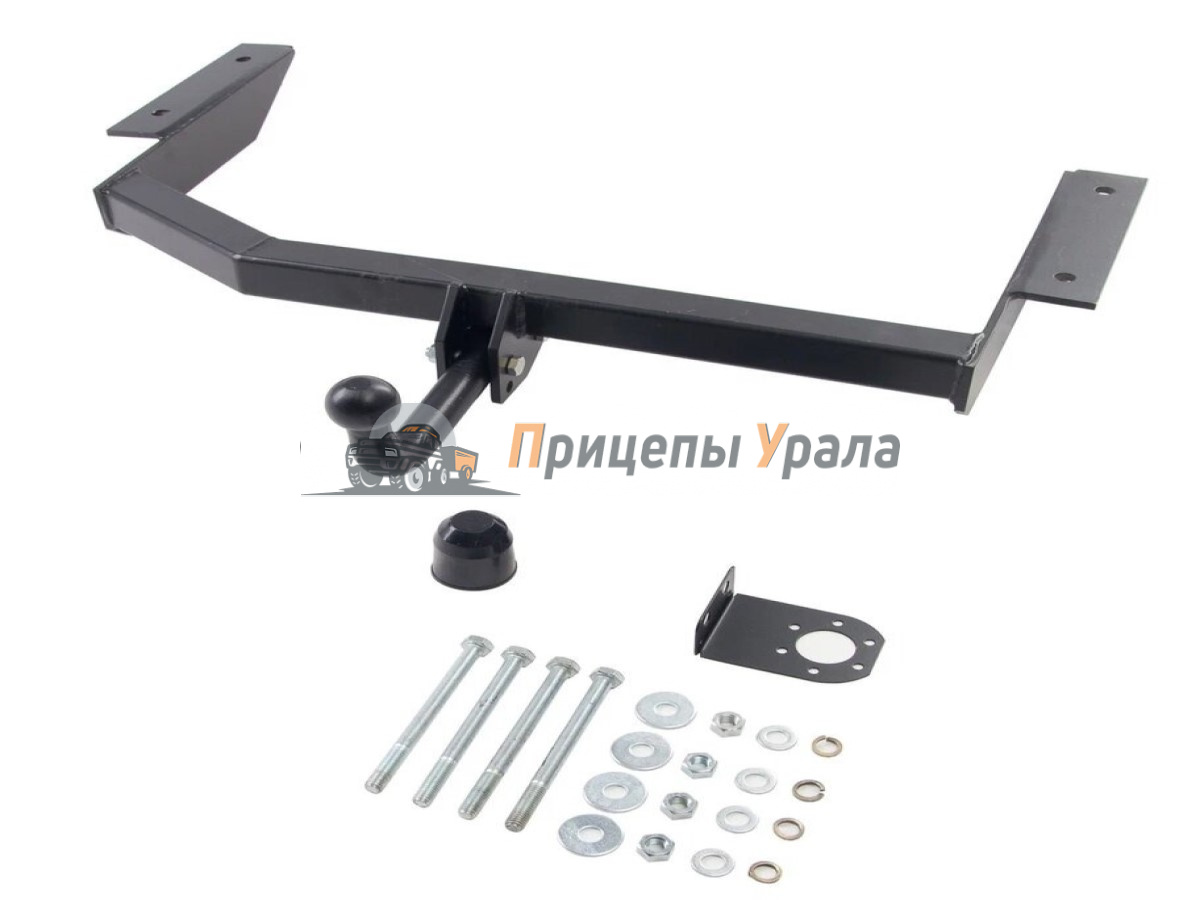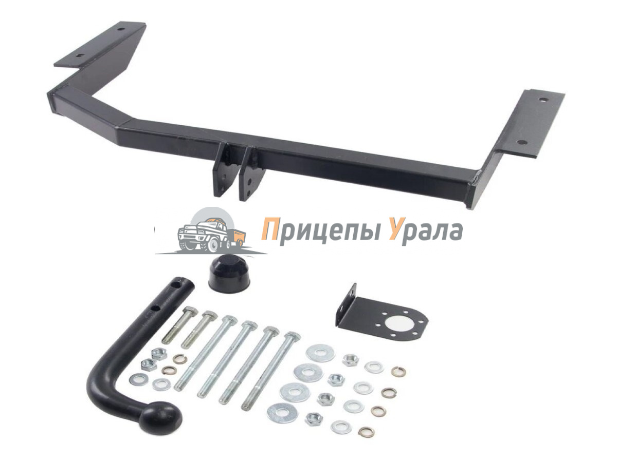 Применимость: Фаркоп подходит на левый и правый руль. Особенности монтажа: Приложить фаркоп к раме. Выставить вылет крюка. Отметить 4 отверстия на раме, просверлить сквозные отверстия. Установить фаркоп, используя болты 4 шт.
