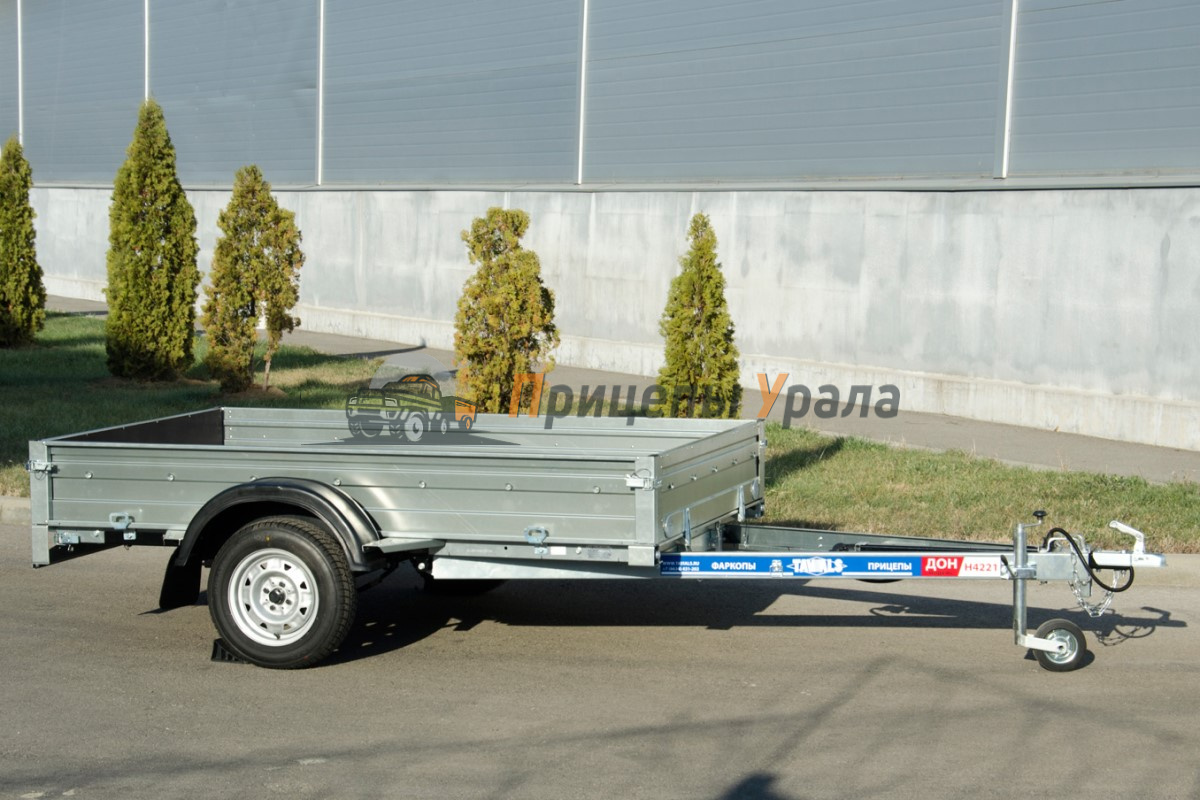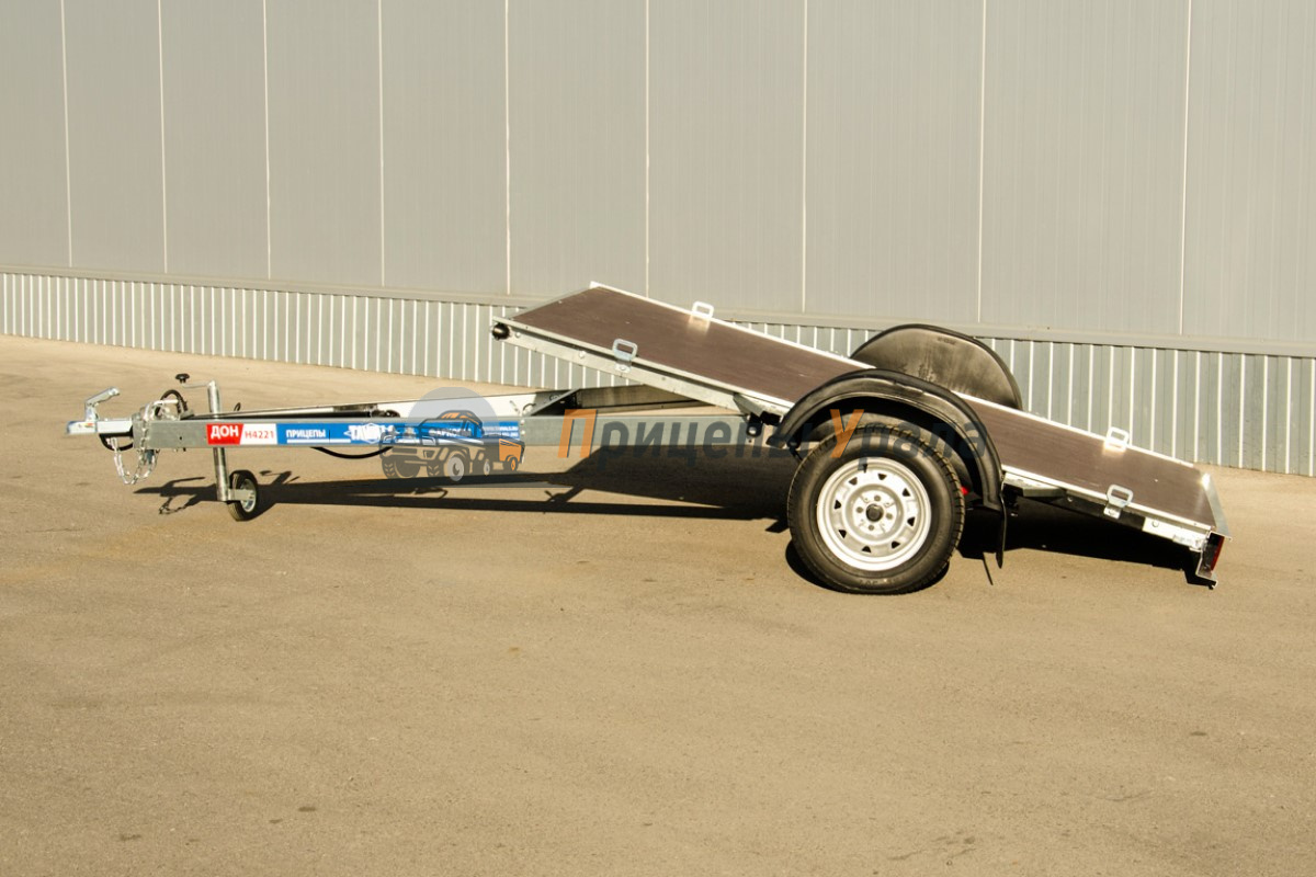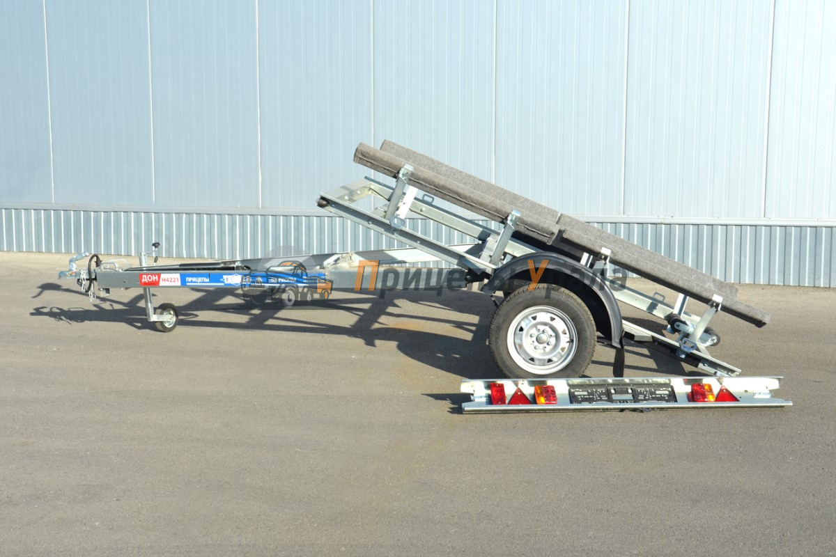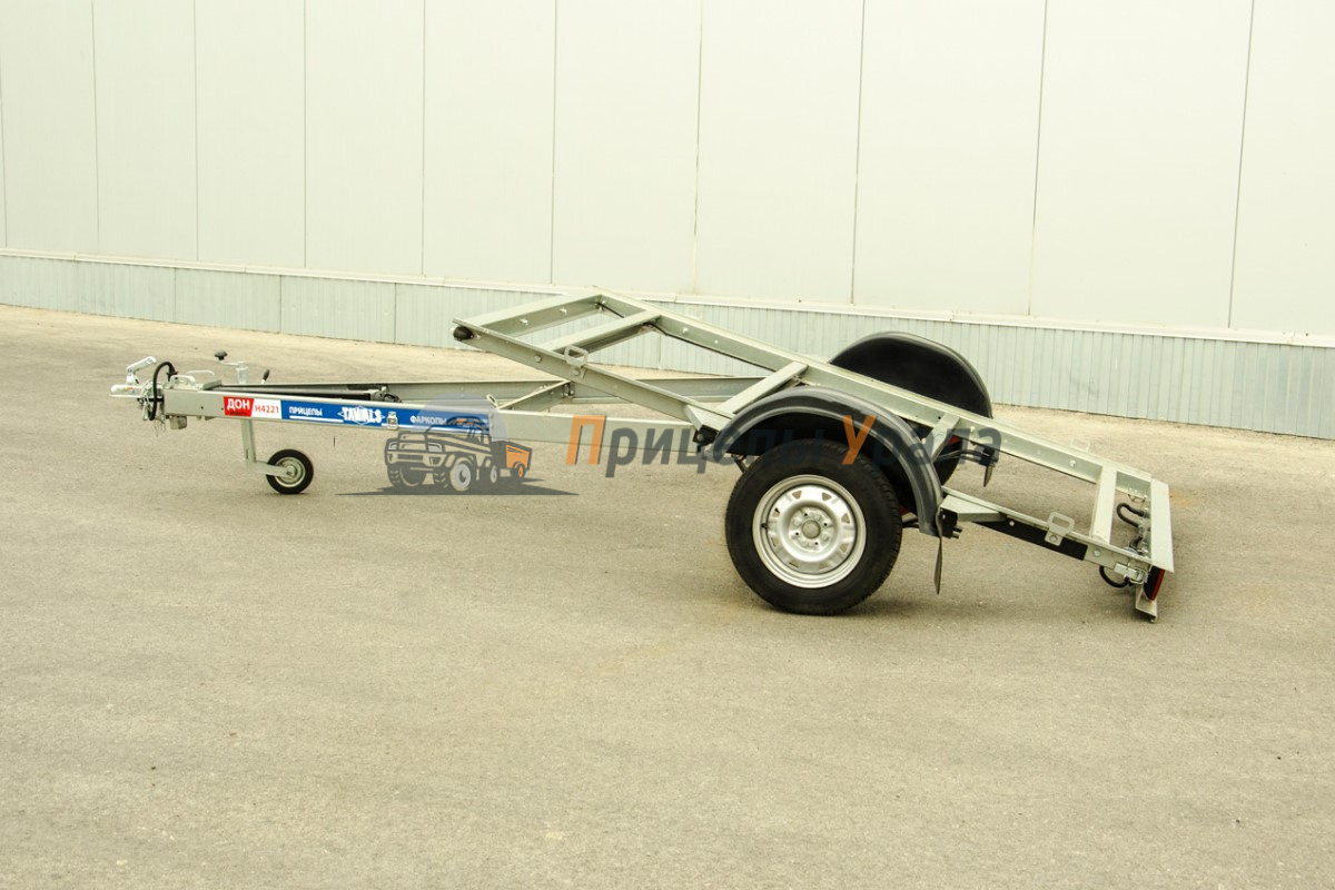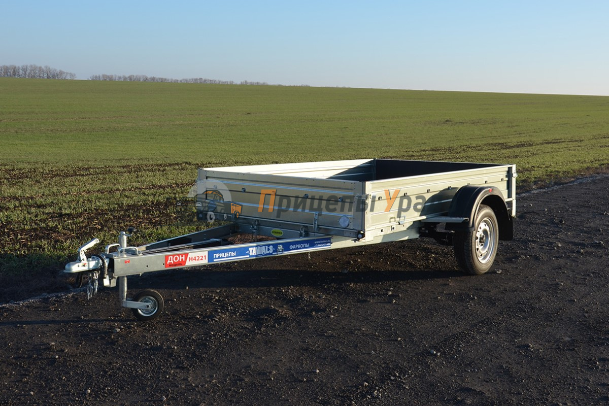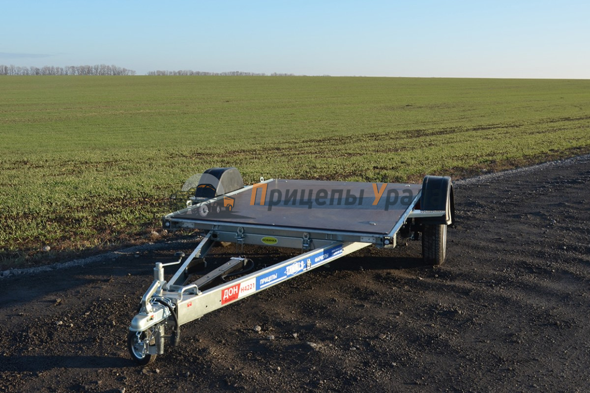 Прицеп «ДОН» Н4221 — это универсальный прицеп, который можно использовать в качестве платформы. На него можно установить ложементы и использовать для перевозки водной техники длиной до 4,5 метров. Можно установить пол, борта, тент с каркасом и получить полноценный бортовой прицеп с кузовом 2,5 на 1,5 метра, который можно использовать для перевозки строительных материалов или мототехники. Прицеп полностью оцинкованный, одноосный. Подвеска прицепа рессорная (5 листов) с гидравлическими амортизаторами сохраняет стабильную плавность хода при разной загруженности прицепа. Ступицы водонепроницаемые. Возможно увеличение или уменьшение погрузочной высоты прицепа при изменении положения рессор, т.е. рессоры можно устанавливать и под ось и над осью. Для удобства погрузки/выгрузки груза прицеп имеет самосвальную систему. В прицепе установлена универсальная, защищенная от повреждений гофрированной трубкой электропроводка с байонетным (более герметичным) соединением задних фонарей.