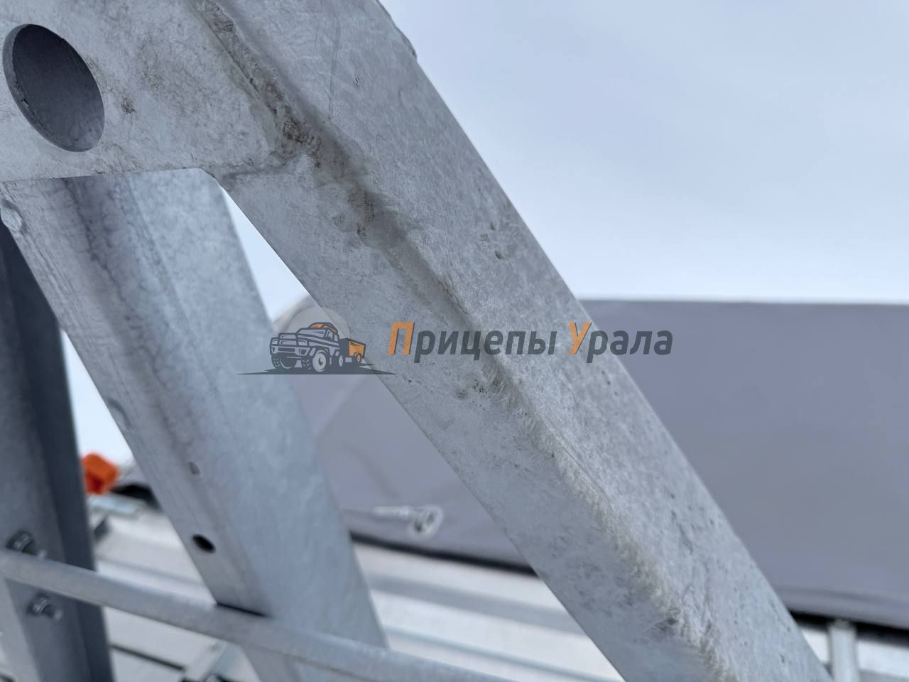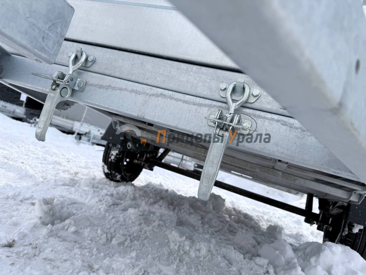 Передний и задний борта прицепа откидные. Передний и задний борт оснащен фанерой. Толщина борта 1 мм. Стойка борта толщиной 2 мм.