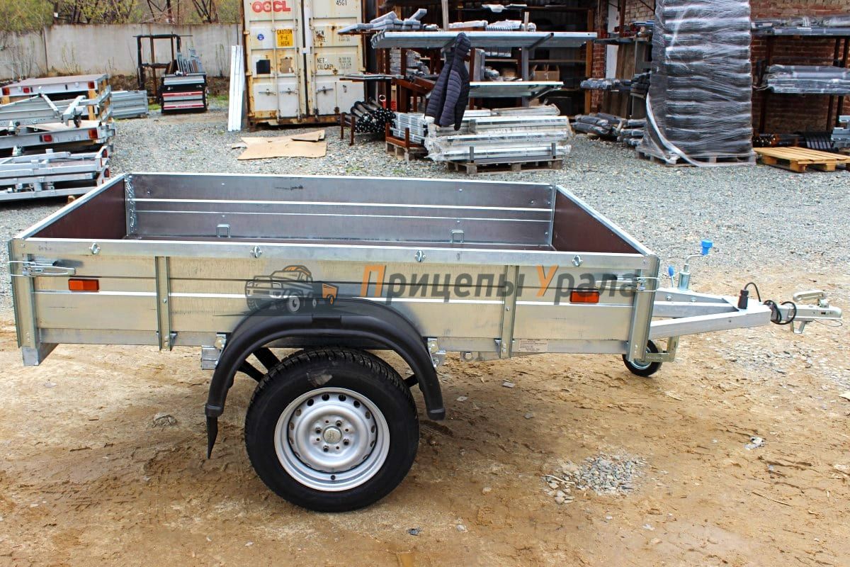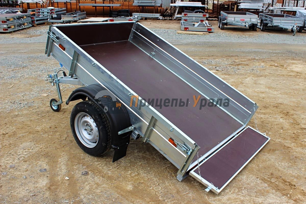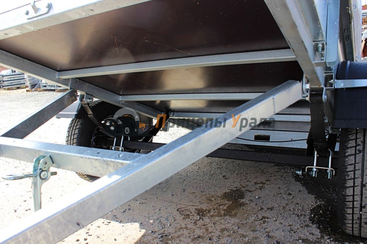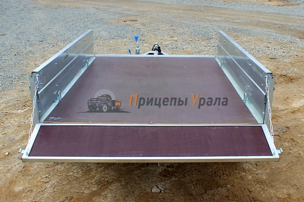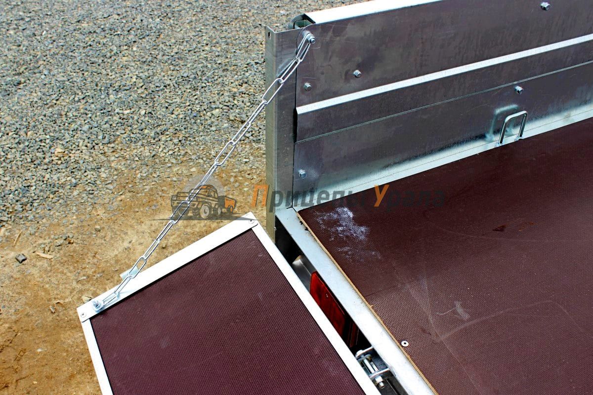 Передний и задний борта прицепа откидные. Задний и передний борта оснащены фанерой. Толщина борта 1 мм. Стойка борта толщиной 2 мм.