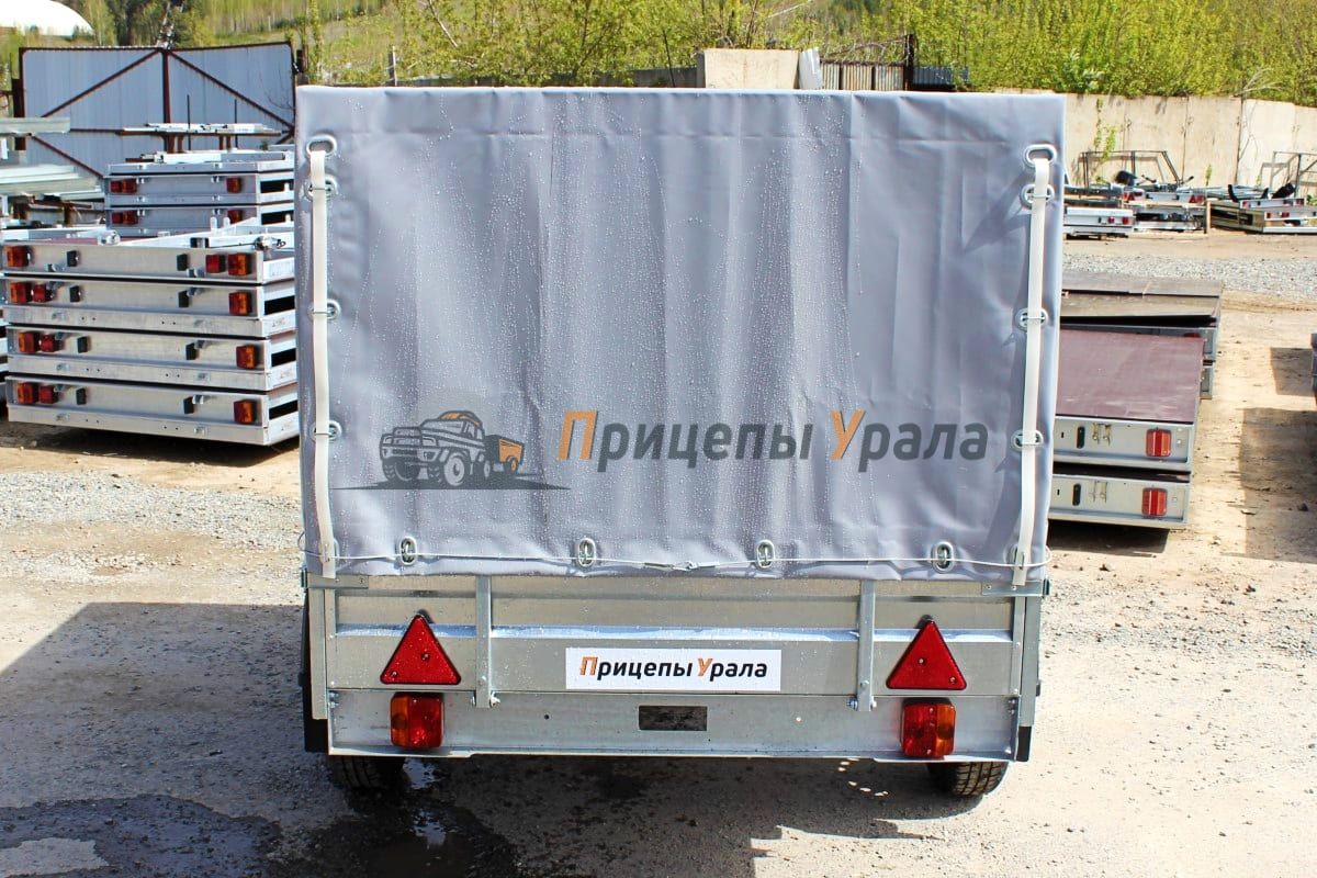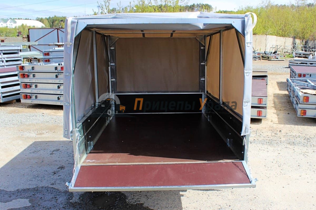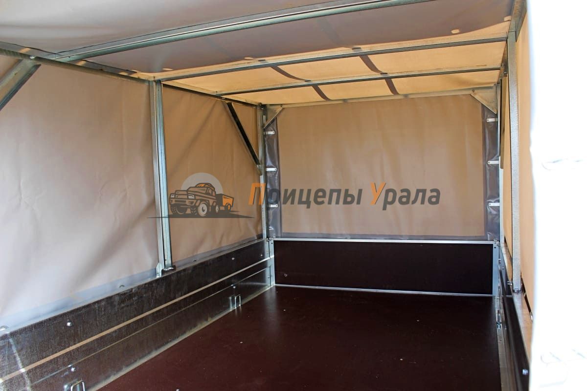 Пол платформы выполнен из фанеры толщиной 6 мм. Дополнительно можно установить тент с каркасом для защиты груза от атмосферных осадков и дорожной грязи. Тент выполнен из плотной тентовой ткани (600 г/м) с овальными люверсами и тросом с карабинами. Каркас оцинкованный, болтовой со стопорным крепежом.
