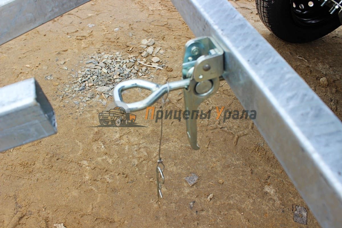 Рама прицепа несущая, состоит из продольных лонжеронов и поперечных балок, изготовленных из гнутых стальных профилей и труб прямоугольного сечения (60*40*2 мм). Прицеп комплектуется V-образным дышлом из профиля 60*40*2 мм, с удлинителем дышла из профиля 60*40*3 мм.