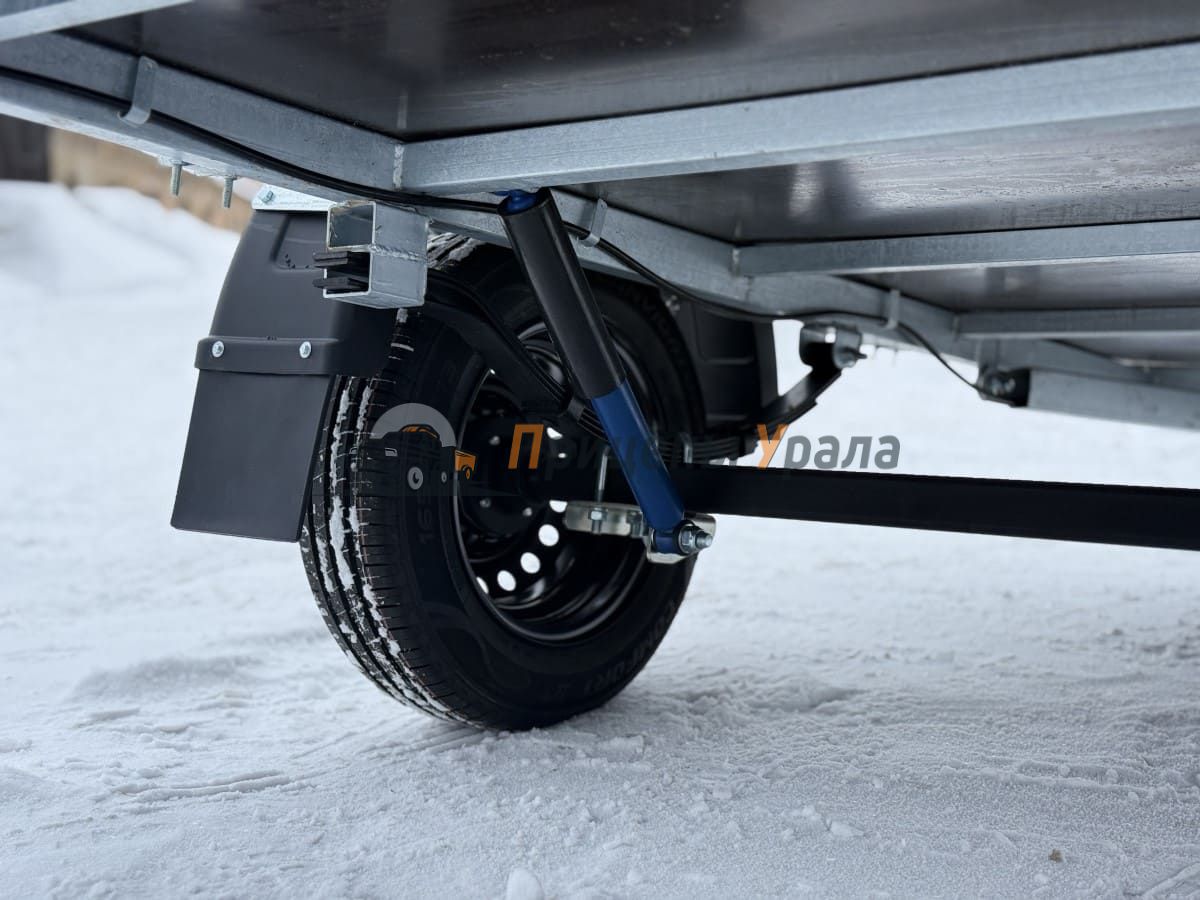 Пол платформы выполнен из фанеры толщиной 9 мм. Дополнительно можно установить тент с каркасом для защиты груза от атмосферных осадков и дорожной грязи. Тент выполнен из плотной тентовой ткани (600 г/м) с овальными люверсами и тросом с карабинами. Каркас оцинкованный, болтовой со стопорным крепежом.